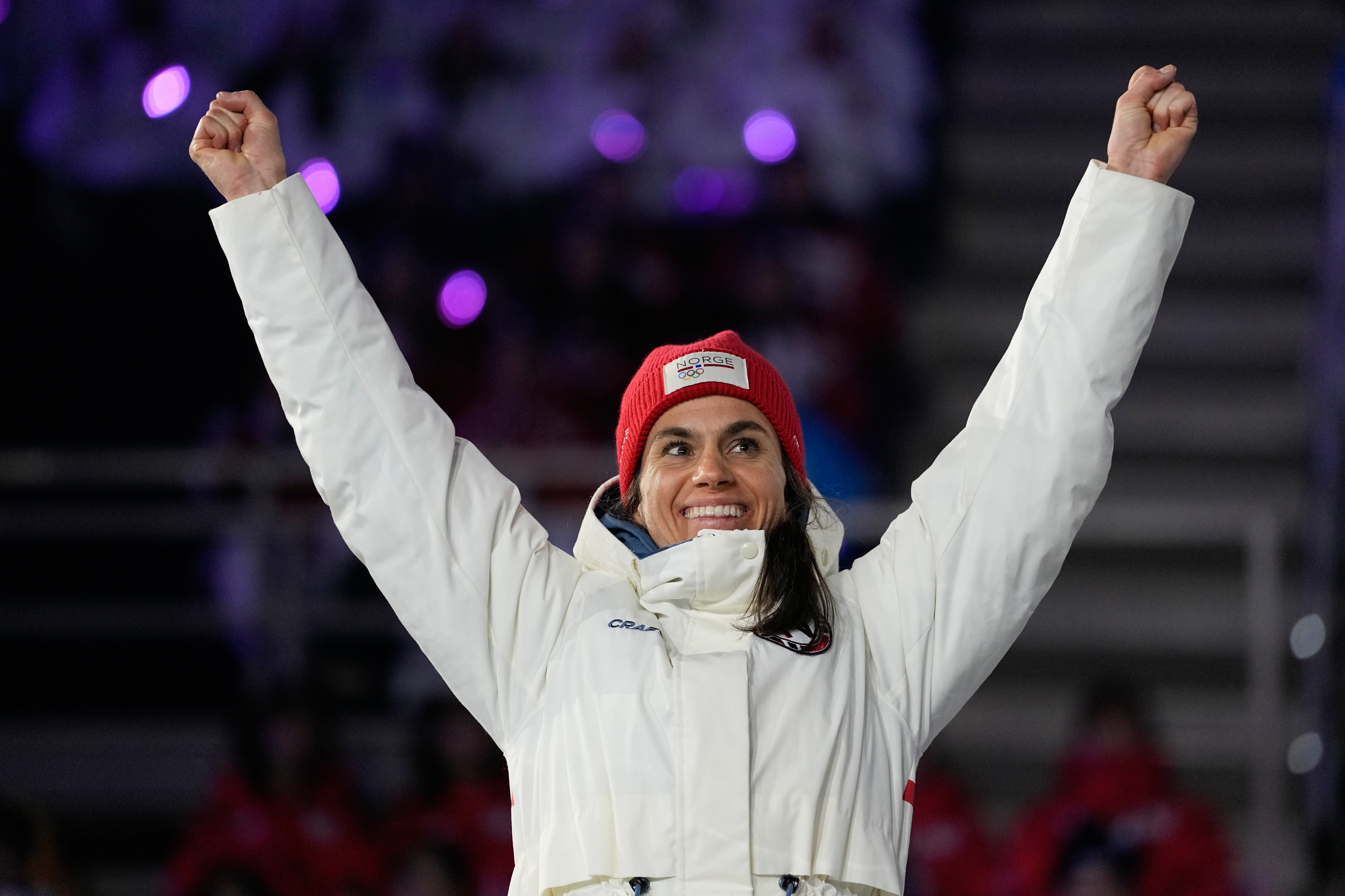 Weng mottar Holmenkollmedaljen på kongetribunen etter femila i Holmenkollen lørdag, sammen med Ebba Andersson, Federico Pellegrino og Ryōyū Kobayashi.