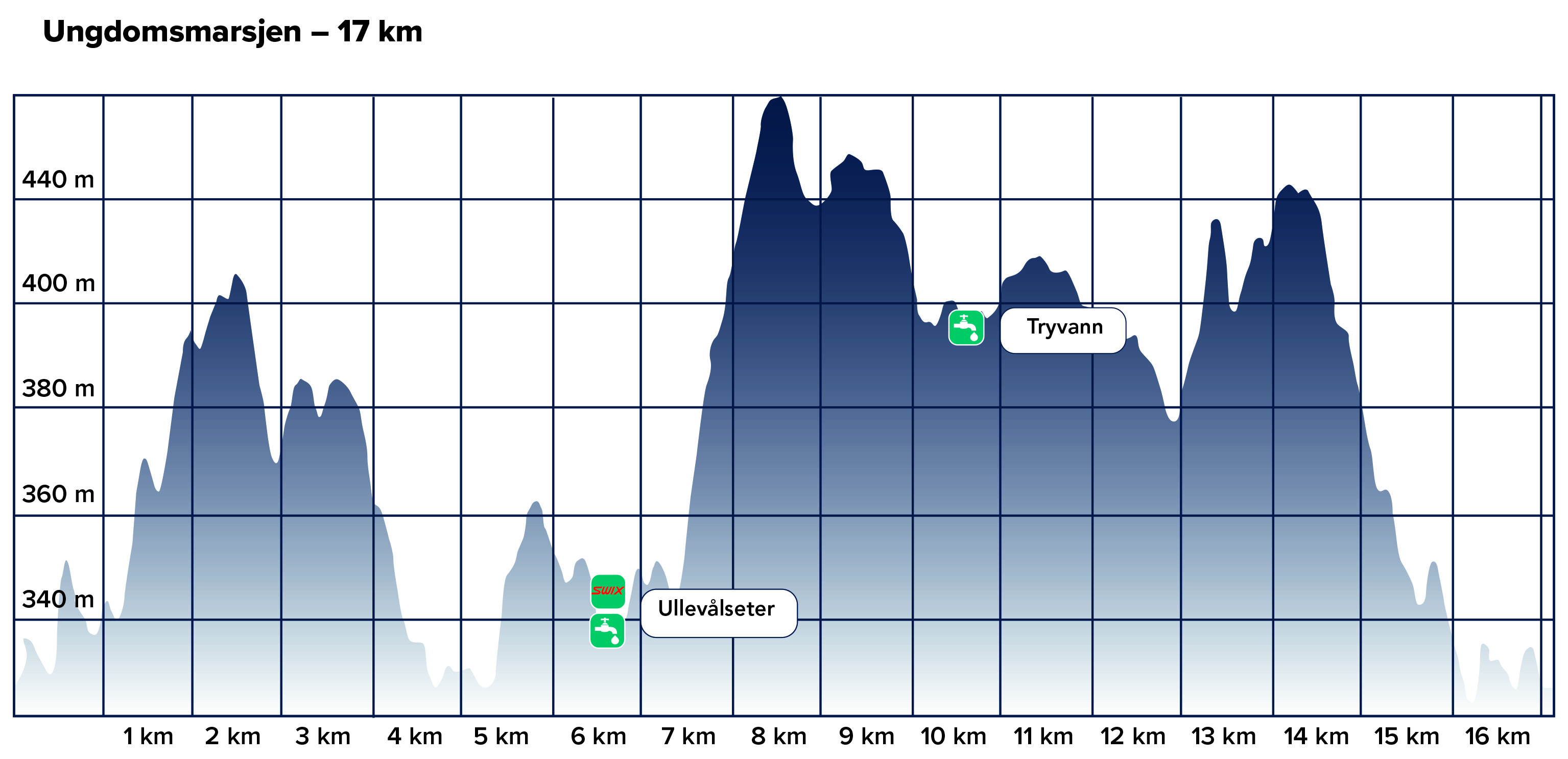 Høydeprofil med drikkestasjoner Ungdomsmarsjen.