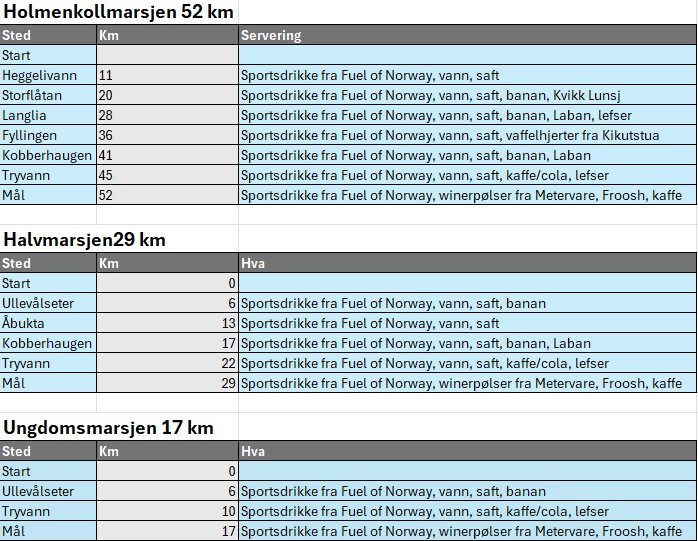Foreløpig start i Sørkedalen for Holmenkollmarsjen 52 km er kl. 8.30 for Menn Elite, og kl. 8.33 for Kvinner Elite. Deretter puljestart hver 4. minutt. Endringer kan forekomme.