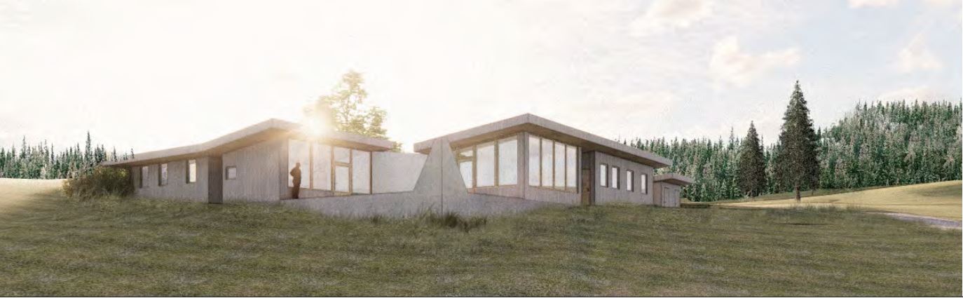 Skissene viser den eksisterende bygningen til venstre i ny drakt og en renovert låve. Her skal Skiforeningen ha dagservering og betjent overnatting. Stedet skal driftes etter den modellen man finner på de andre markastuene Skiforeningen har.