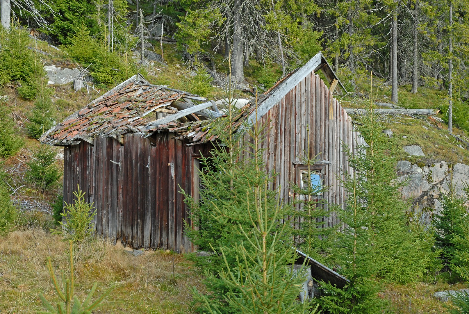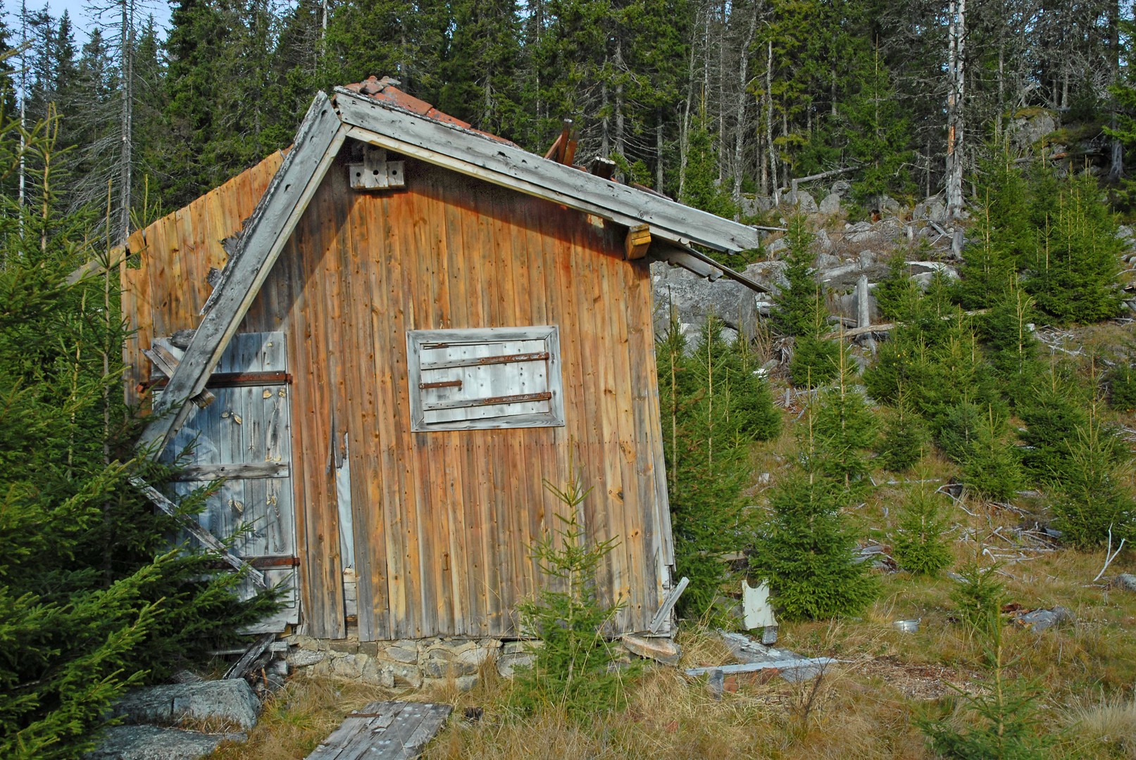 Den gulmalte bygningen så ut som en reisverksbygning med både utvendig og innvendig panel, og hadde nok vært for mennesker. Den hadde inngangsdør og vindu på sydveggen, begge lukket med solide lemmer. Toetasjes fuglehus tyder på at beboerne hadde hatt naturinteresse. Taket var for lengst forsvunnet sammen med takstolen på nordveggen, og huset var fylt med nedfalne materialer. Siden døren var forsvarlig lukket og låst, og det var fullt av materialer med spiker i inne i huset, var det ikke mulig å gjøre seg opp en mening om hva bygningen hadde vært brukt til. Fotografiinteresserte hytteeiere i området kjente til husene, visste hvor de var og hadde tatt bilder der selv, men det var også det hele.