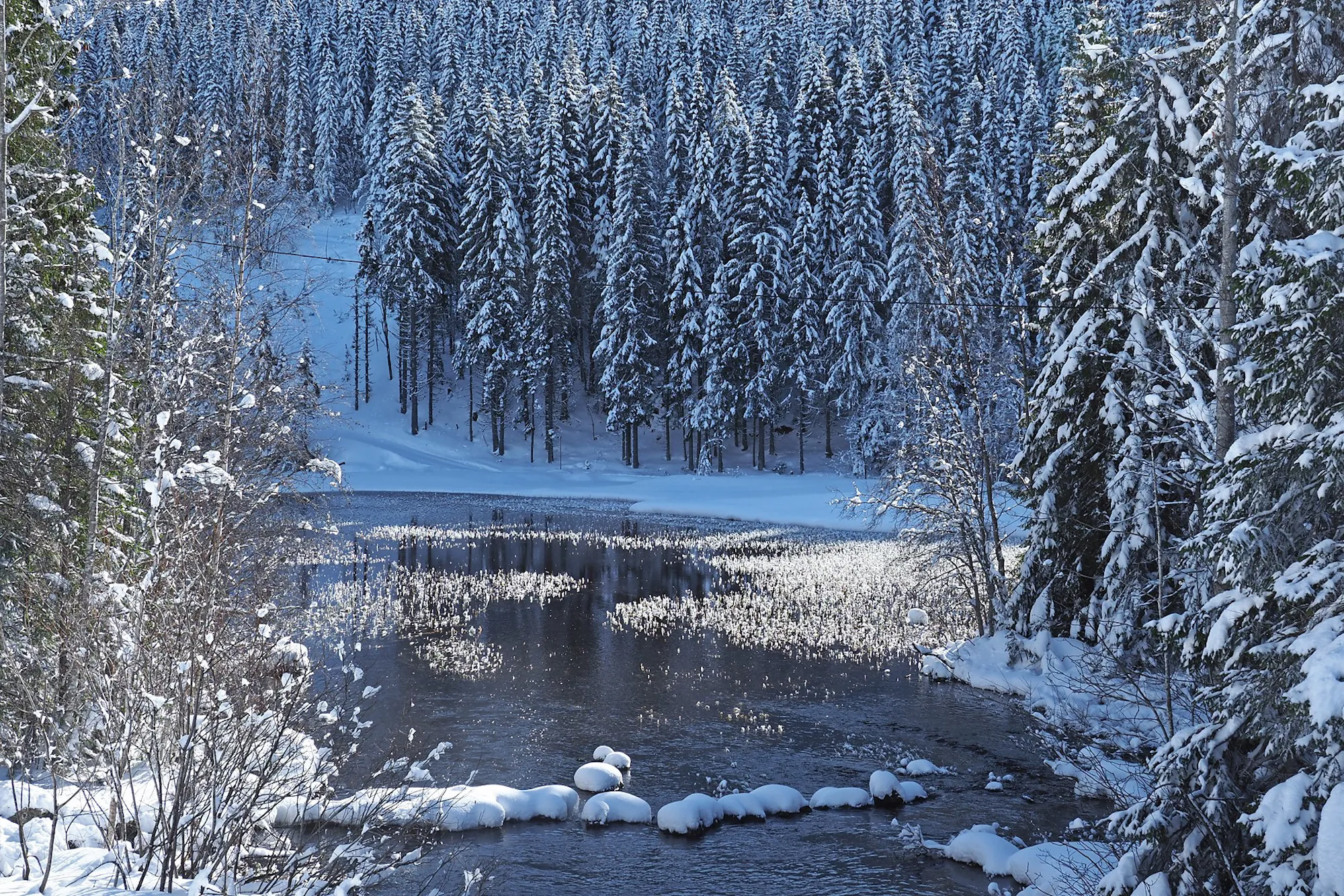 SIV: Sikten til innløpet til Myllsfløyta er ganske dekket av bladverk sommerstid, men nå var den bra. Sivet i innløpet hadde fått et kledelig dekke av rim og nysnø, og gjorde seg bra i marssolen. To timer senere var rimet smeltet, og sivet sto igjen bart.