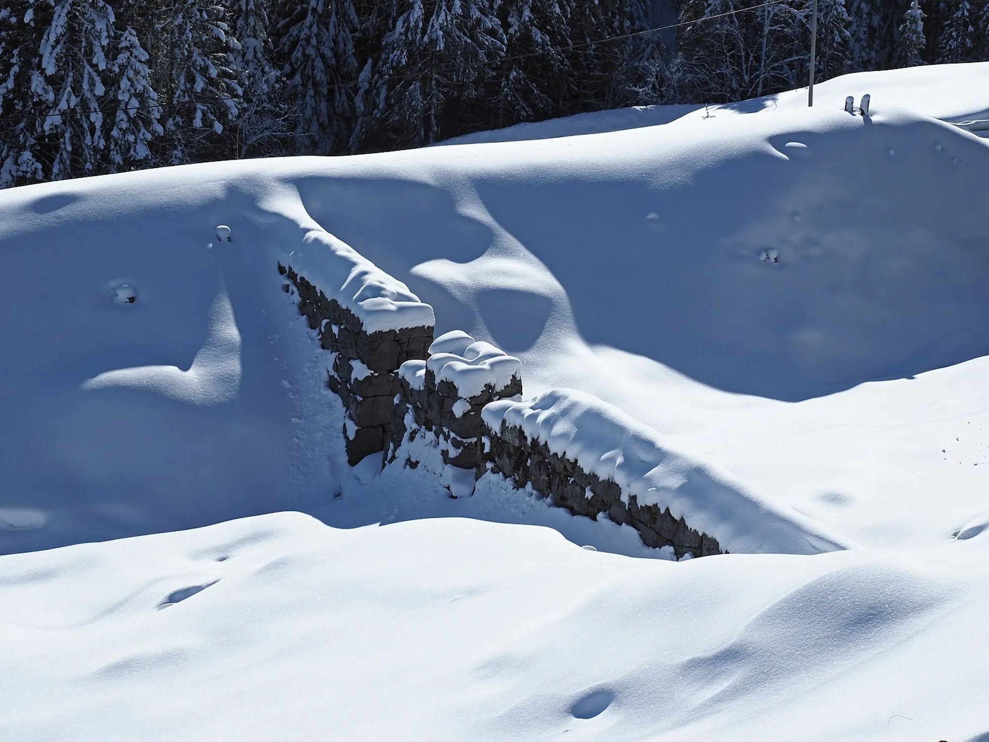 SPOR I SNØEN: For å se luftsiden av demningen, må man ut av løypa omtrent ved det nedsnødde bordet med benker. Her var det noen interessante detaljer i nysnøen, spor etter dyr og/eller spor etter vind?