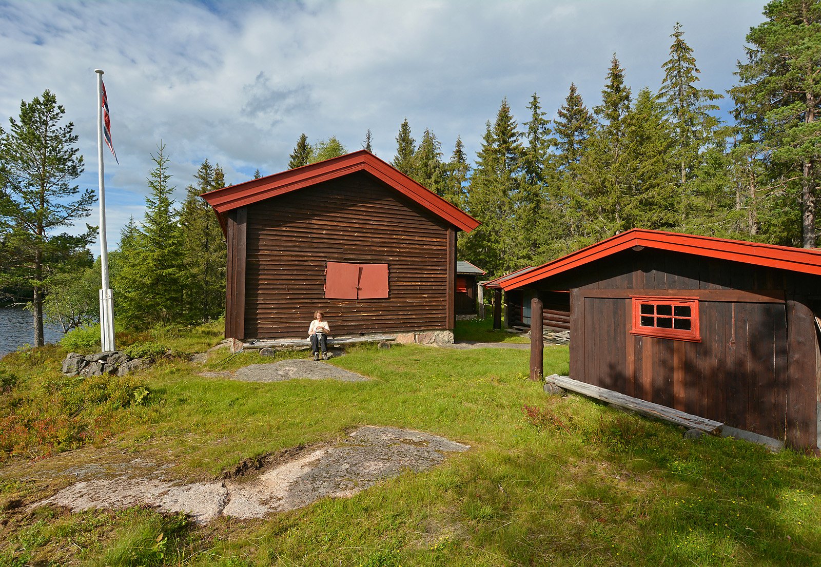 BLOKSBERG: Vest for Åbortjern ligger hytta Bloksberg. Velholdt, men ikke mye brukt nå for tiden om man skal dømme ut fra stien dit. Flaggstangens litt spesielle utseende skyldes ikke objektivfeil, men at fundamentet er i ferd med å gli ut.