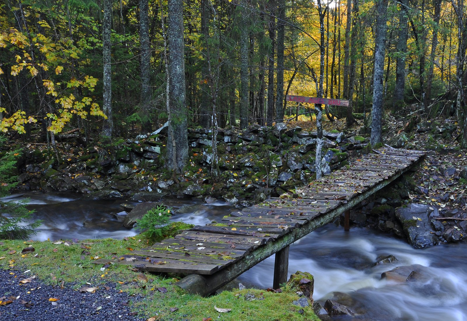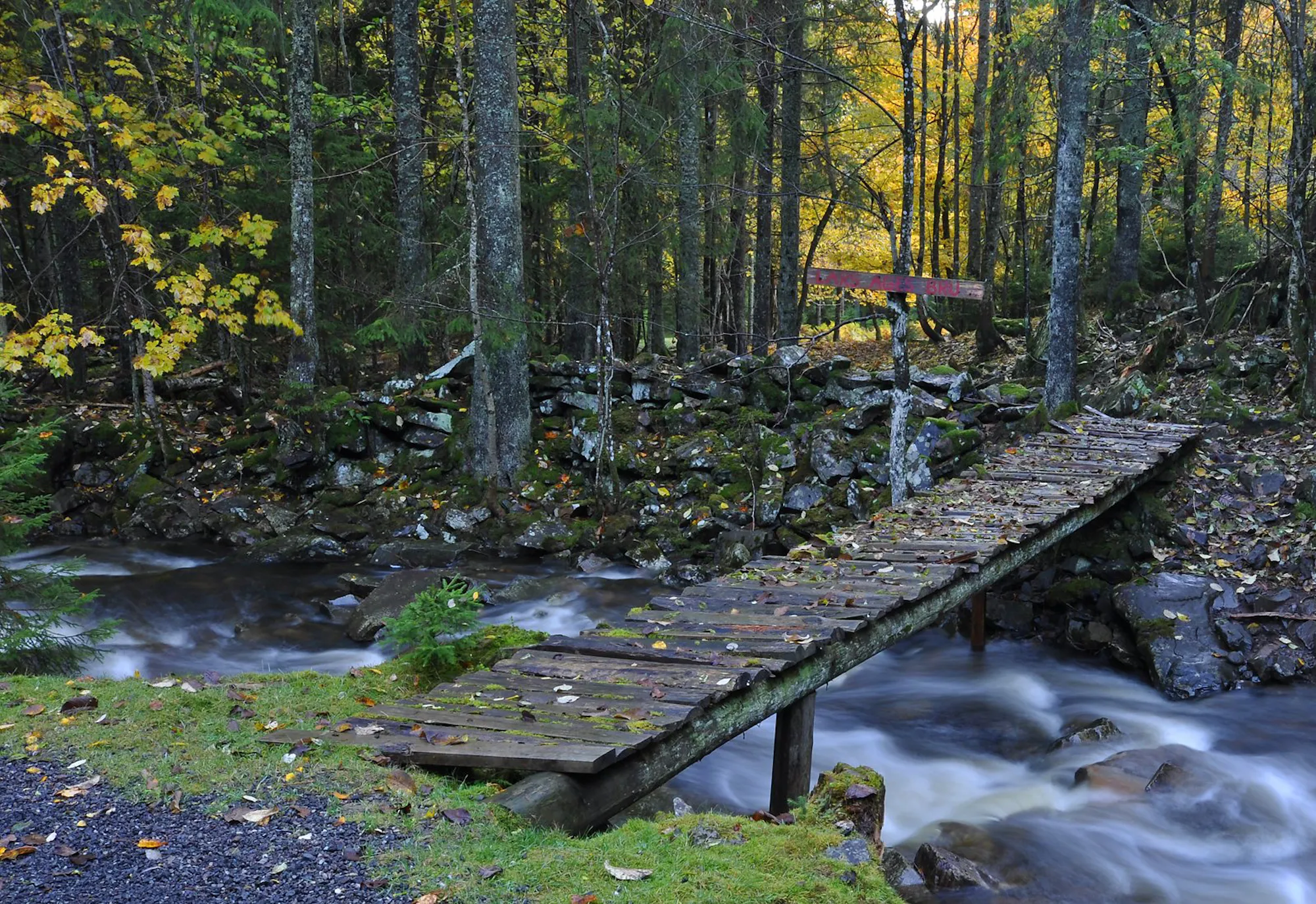 SISTE SJANSE: Noen hundre meter ovenfor Persbråten ligger Lars Åges bru, den siste sjansen til å krysse elva sånn noenlunde tørrskodd før man nærmer seg Svartvann et par kilmeter lenger oppe. Men brua har dekke av morken honved, og krever både balanseevne og o-sko med stålpigger på en våt dag som denne.