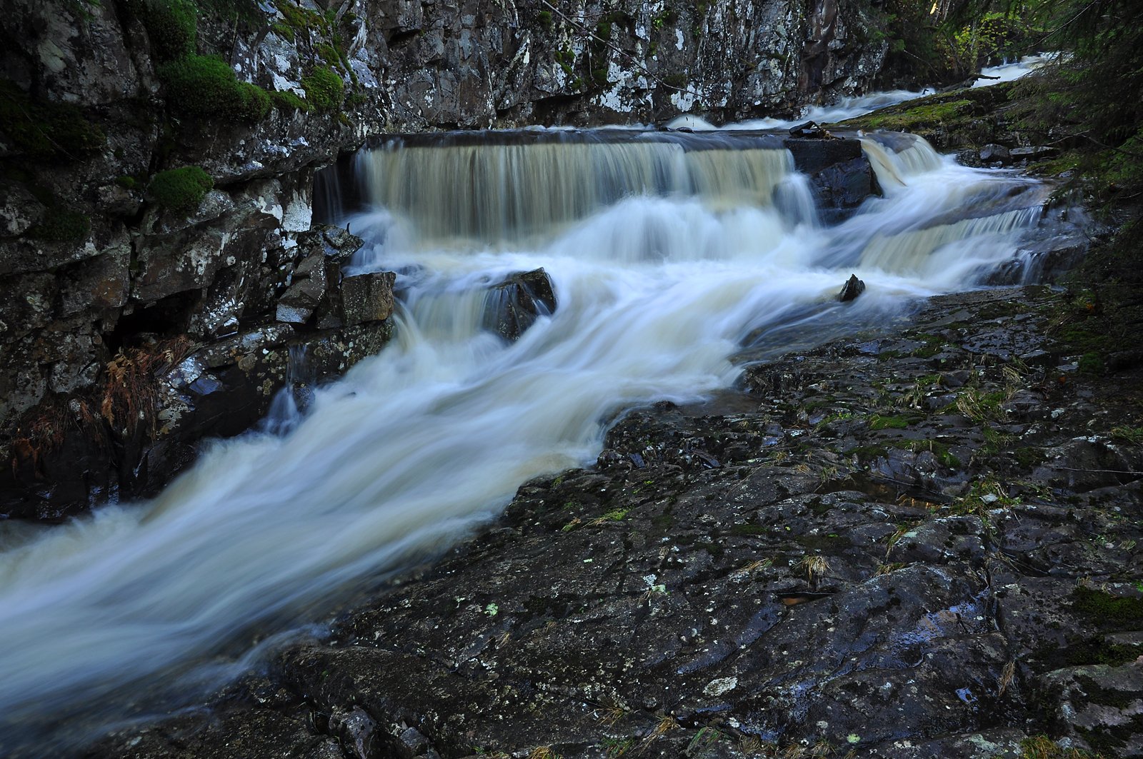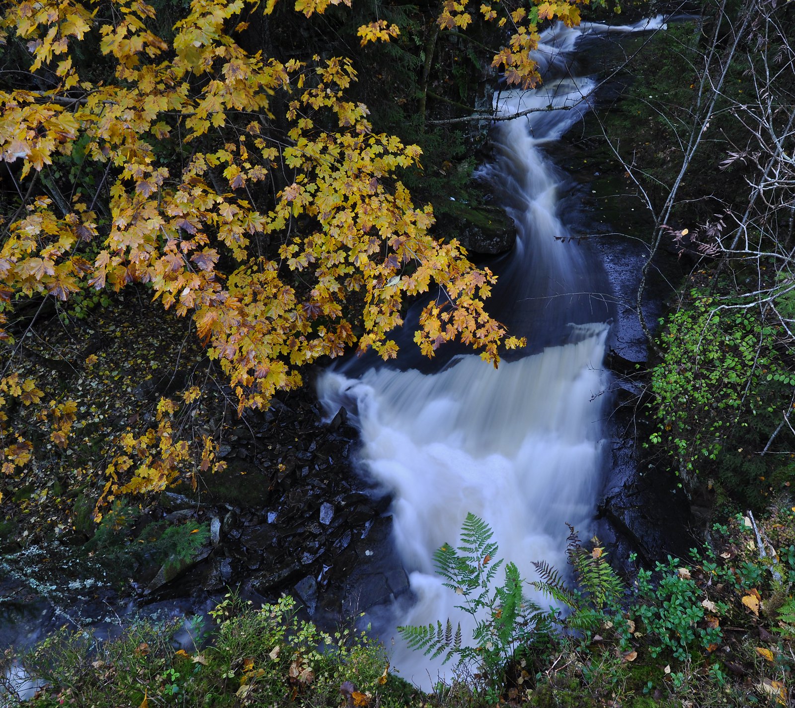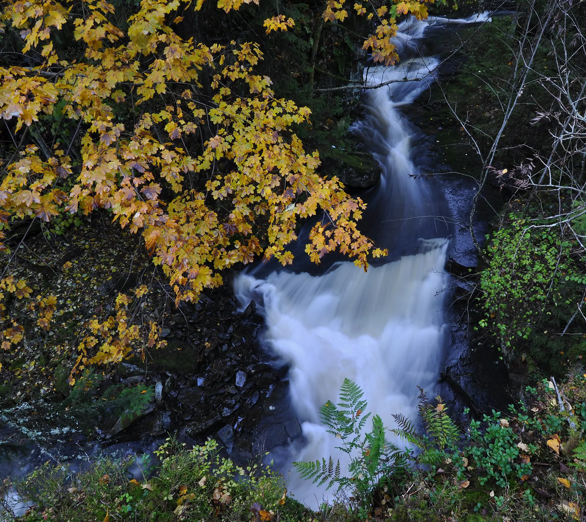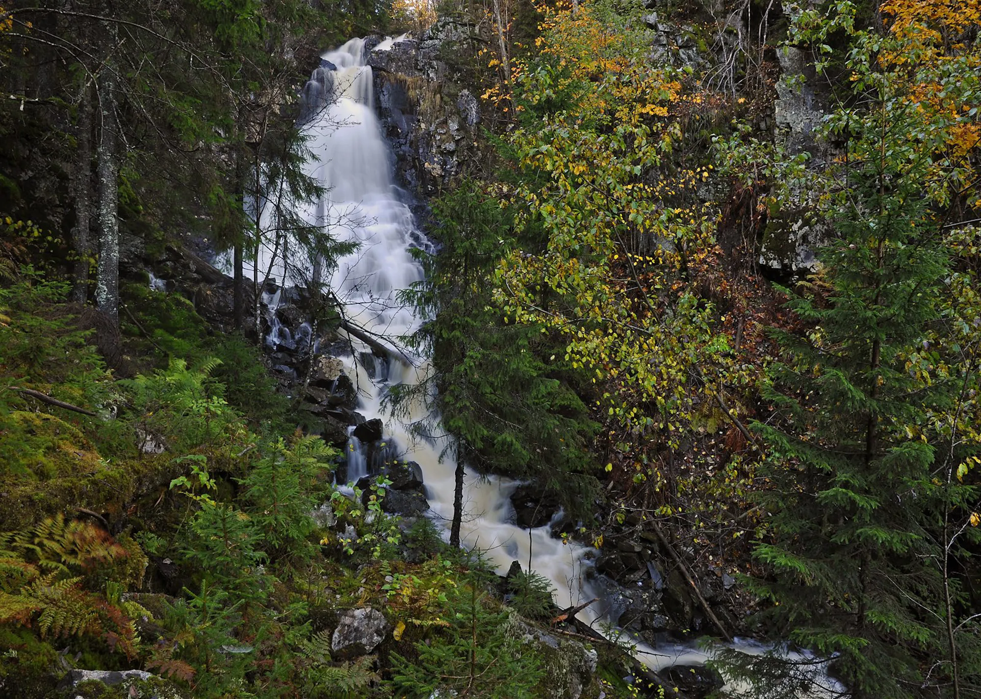 HØSTIDYLL: Ovenfor saga går elva i ei trang renne. Stryk og fosser som denne gjør det verdt å ta avstikkere fra blåstien og ned til elveleiet.