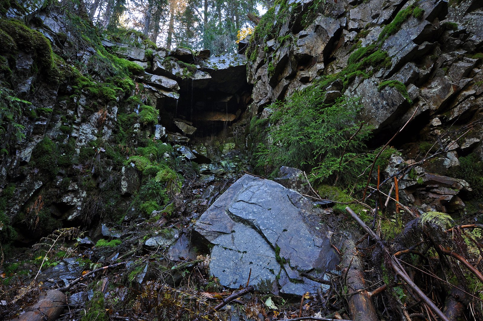 SØLVHØLEN SKJERP: I 1619 søkte Tobias Kupfer, kjent for å ha bygget den første masovnen i Norge på forløperen til Bærums Verk, etter drivverdige malmforekomster i «bermes Herit» (Bærum herred). Han fant «Eysensteine» og «een glanz Erz helt viel Silber vnndt Bley». Det siste var kanskje i skjerpet på bildet, som er kalt Sølvhølen. Geolog Johannes Dons, NGU, har undersøkt kløfta og dette skjerpet, og fant inne i elvecanyonen svovelkis i mengder. I Sølvhølen skjerp ble det registrert forekomster av bl.a. kobber, sink, bly, jern, arsen, antimon, vismut, tinn og sulfider.