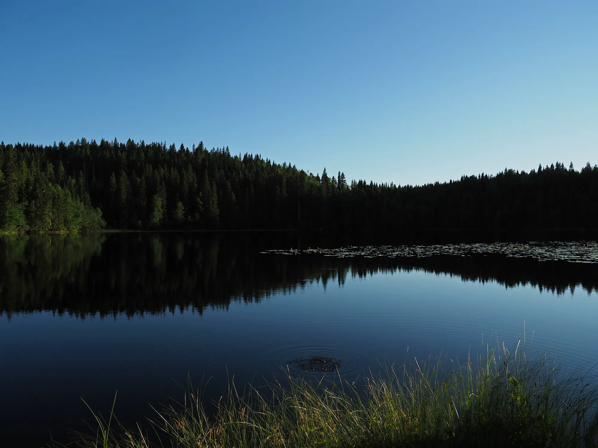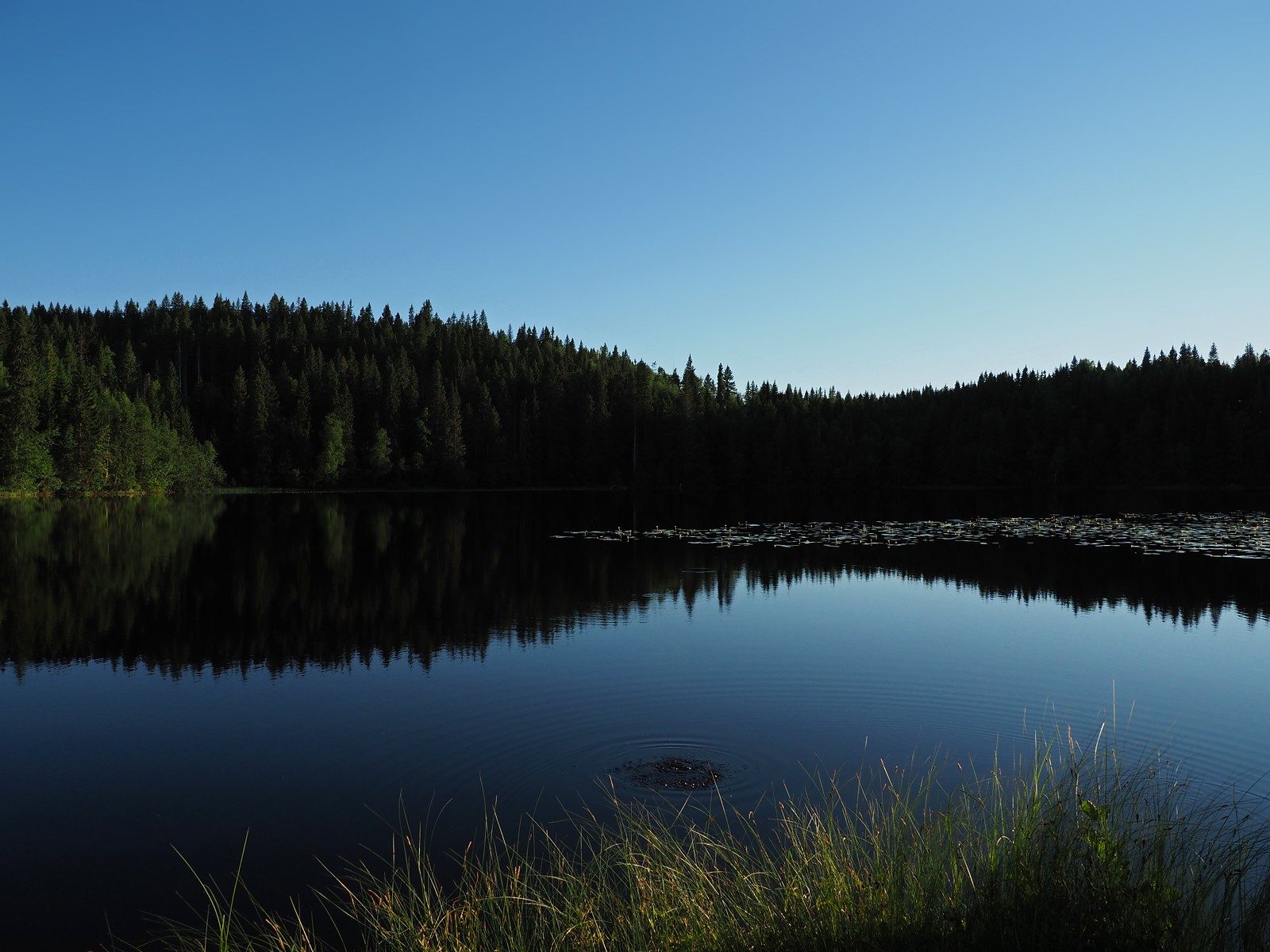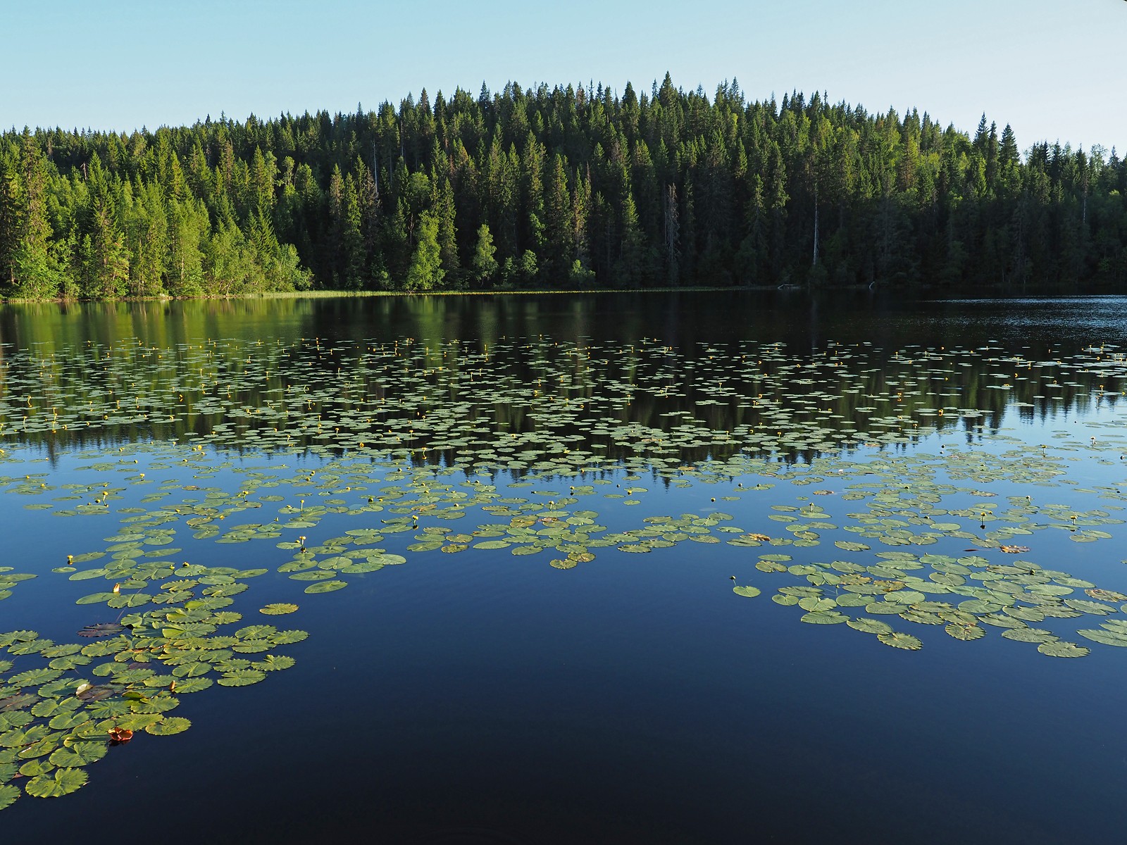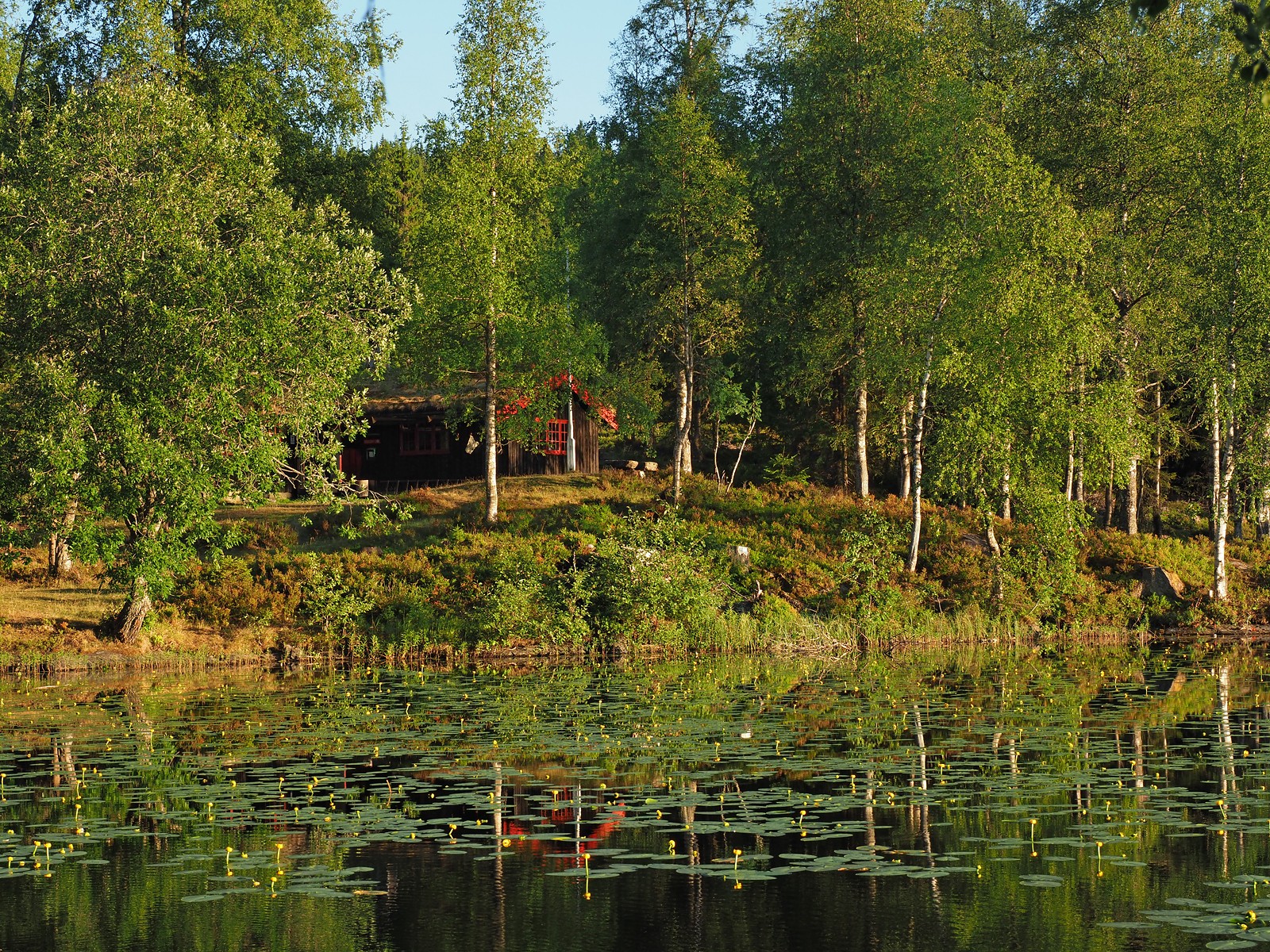 IDYLL: Denne varme sommerkvelden var Svartvann en pur idyll med stort sett blankt vann og store flater med gule vannliljer. Selv om det for det meste er tettvokst med trær langs bredden, er det flere fine utsikter til vannet. Det går sti/tråkk nær bredden rundt hele vannet, men enkelte steder blir det likevel litt bushing.