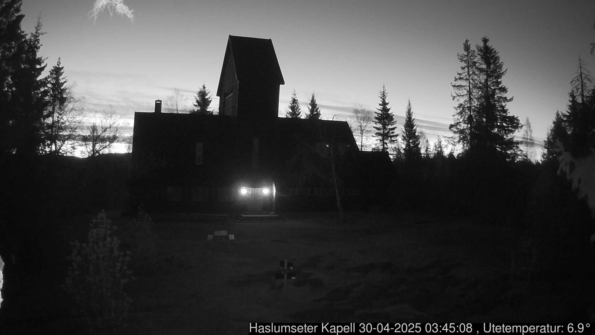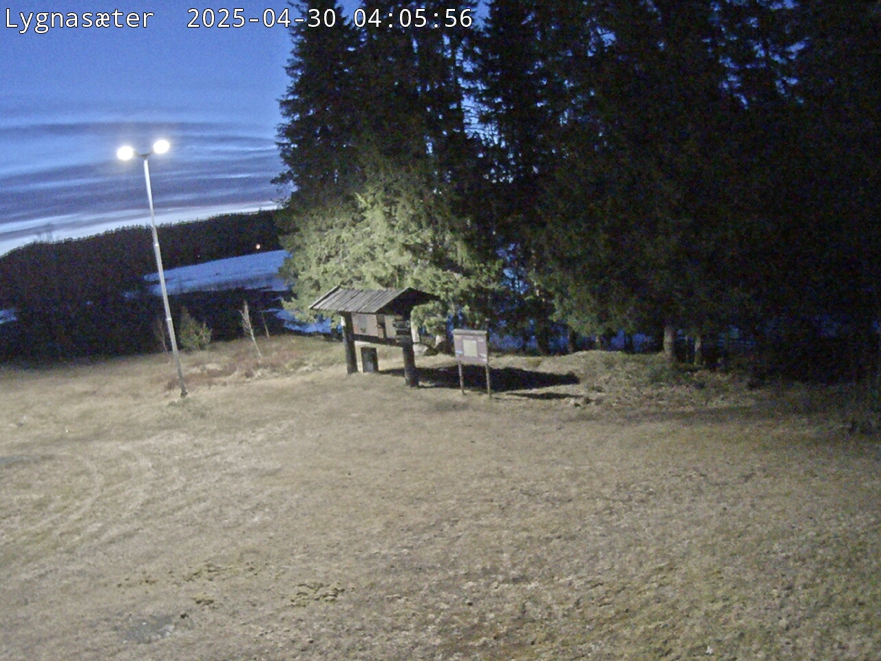 Kameraet står på mønet på Kikutstua og er rettet ned bakken mot Bjørnsjøen.