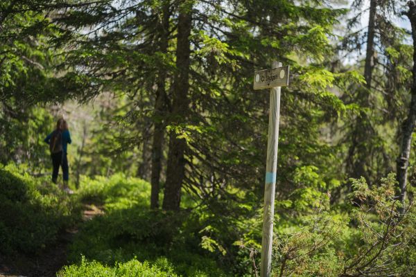 Derfra videre på blåmerket sti mot over Stormyr, Kustein, ned til Heggelivann og sti til Skansebakken.