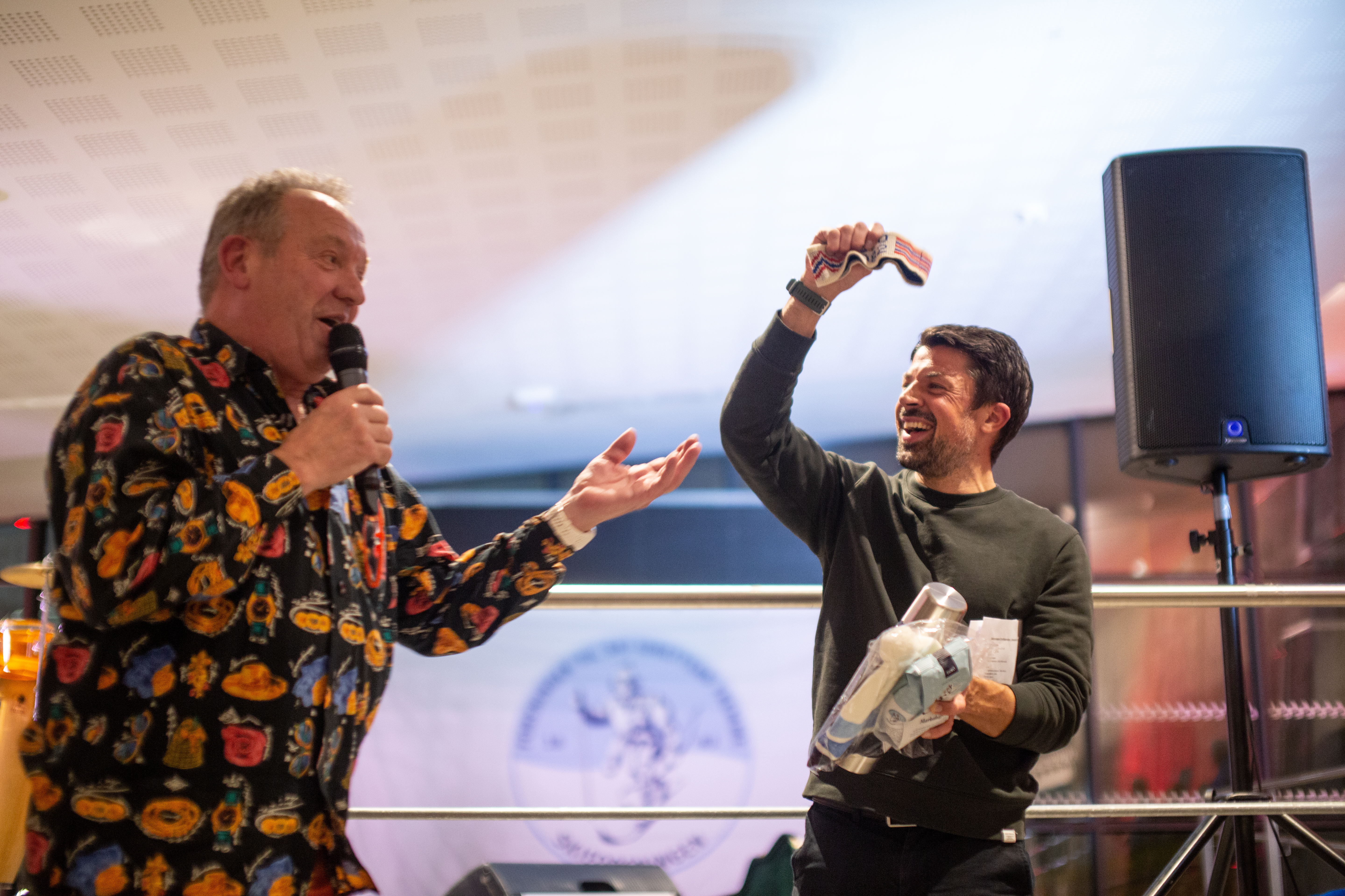 Komiker og ihuga skiløper Nils-Ingar Aadne stod for underholdningen. Han har et nært forhold til Marka, og bruker mange timer i løypene. 40-åringen er en habil skiløper, og fikk salen til å skratte da han med sin harselering over egne rennplasseringer og skrale resultater på premiefronten.