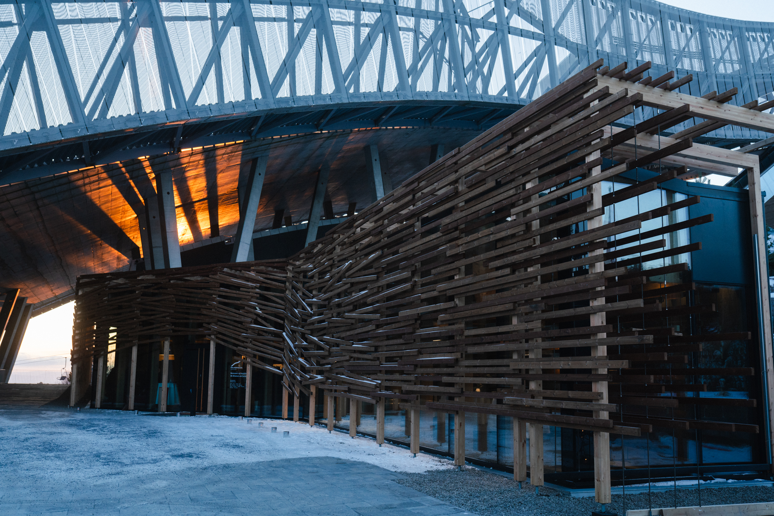 Snøhetta har tegnet nye Skimuseet. Sentrale bidragsytere er Hans Herman Horns stiftelse, Nadia og Jacob Stolt-Nielsen Veldedige Stiftelse og Sparebankstiftelsen. Veidekke er entreprenør og SixSides har hatt ansvaret for den nye utstililngen.