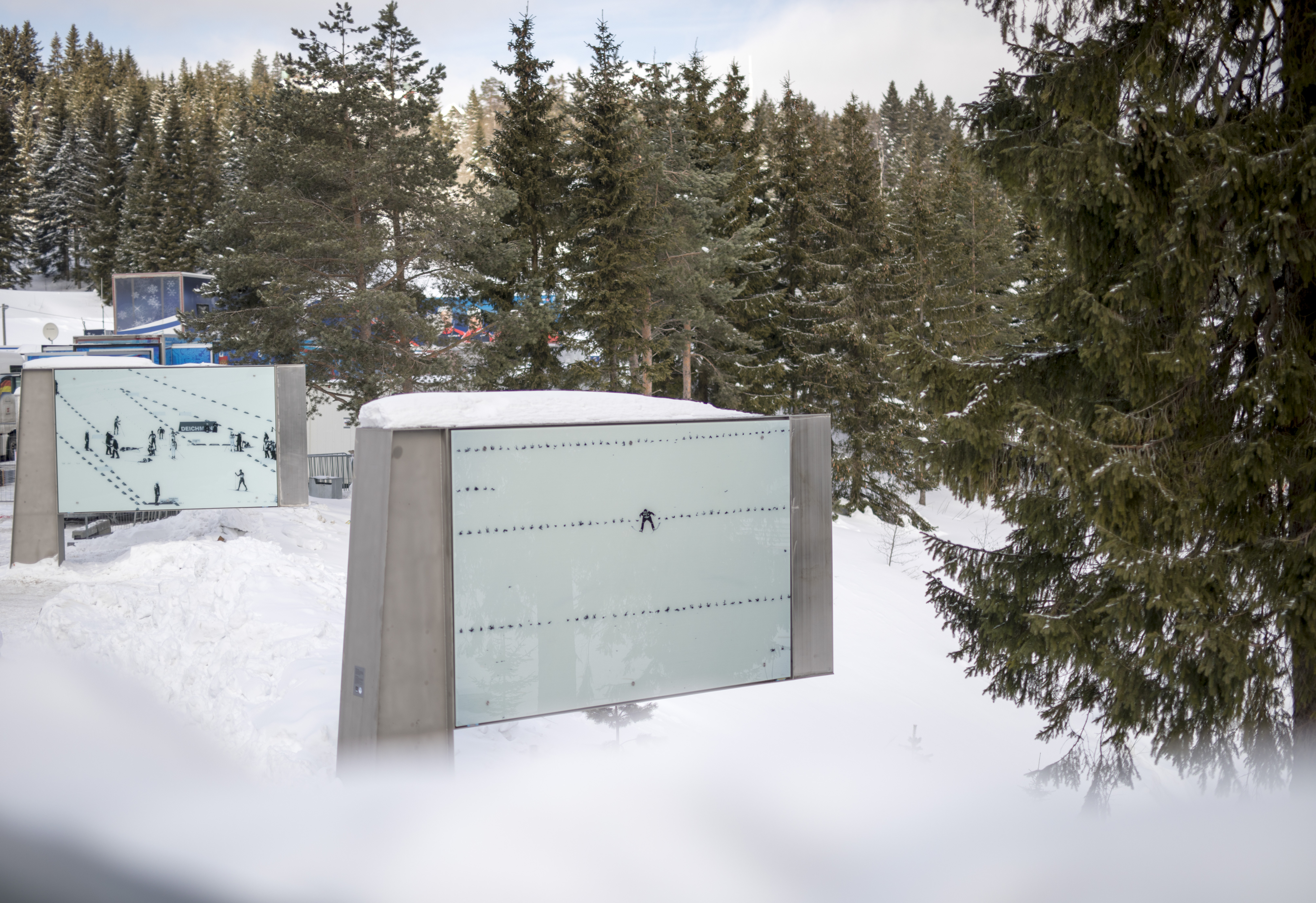– Tom Sandberg var gråtonens mester og det kommer tydelig frem i fire store installasjoner på Kollentorget. Dette er noen av Europas største installasjoner av bilder i glass. I utstillingen får vi et unikt perspektiv på skiidretten. Sandberg har fanget poesien i skisporet og svevet, stemningen blant publikum, naturen og det magiske lyset, sier leder av Skimuseet, Birgitte Espeland.