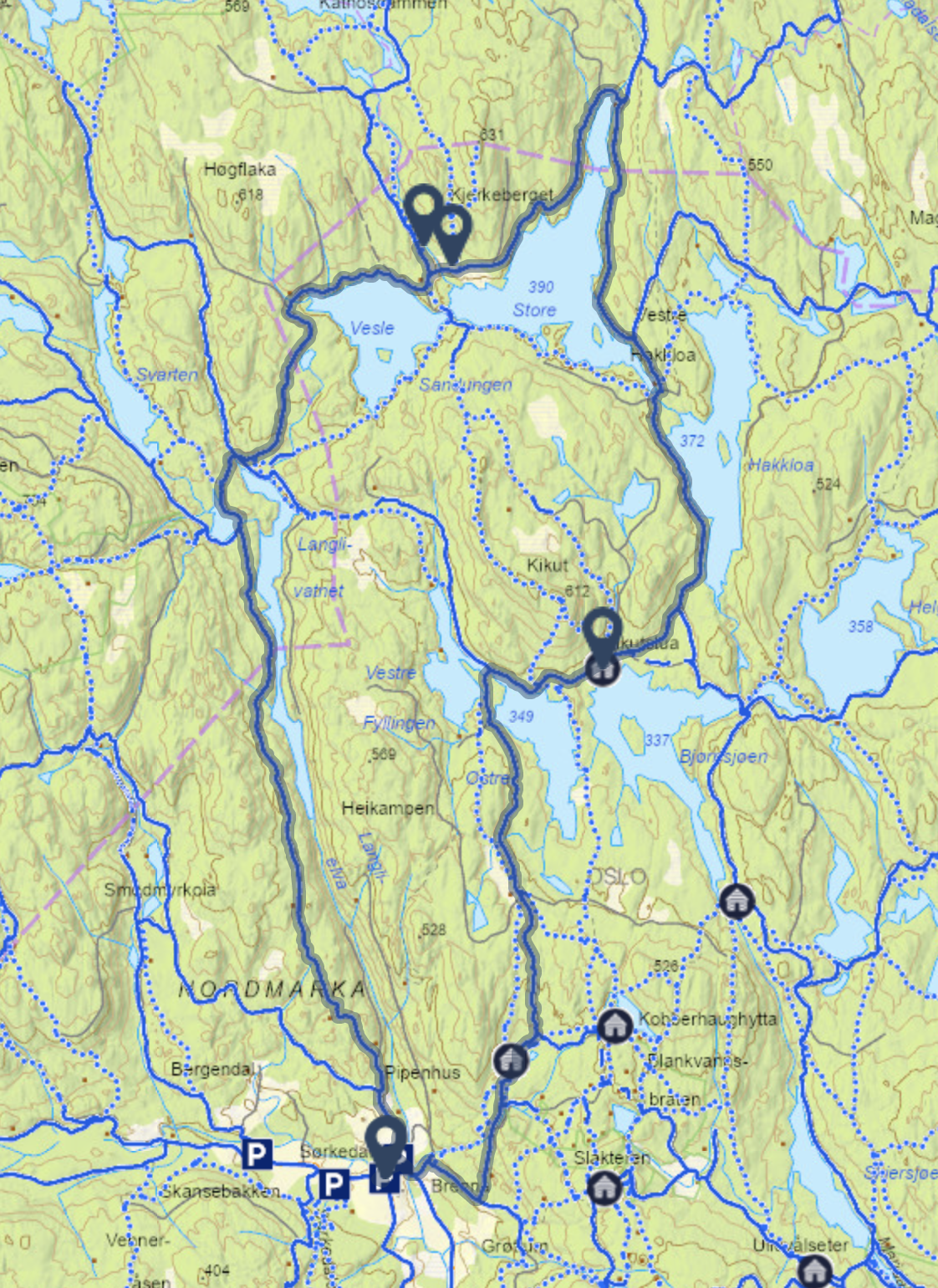 Lang, men fin rundtur: Her er kartet for turen laget i Skiforeningens turplanlegger.