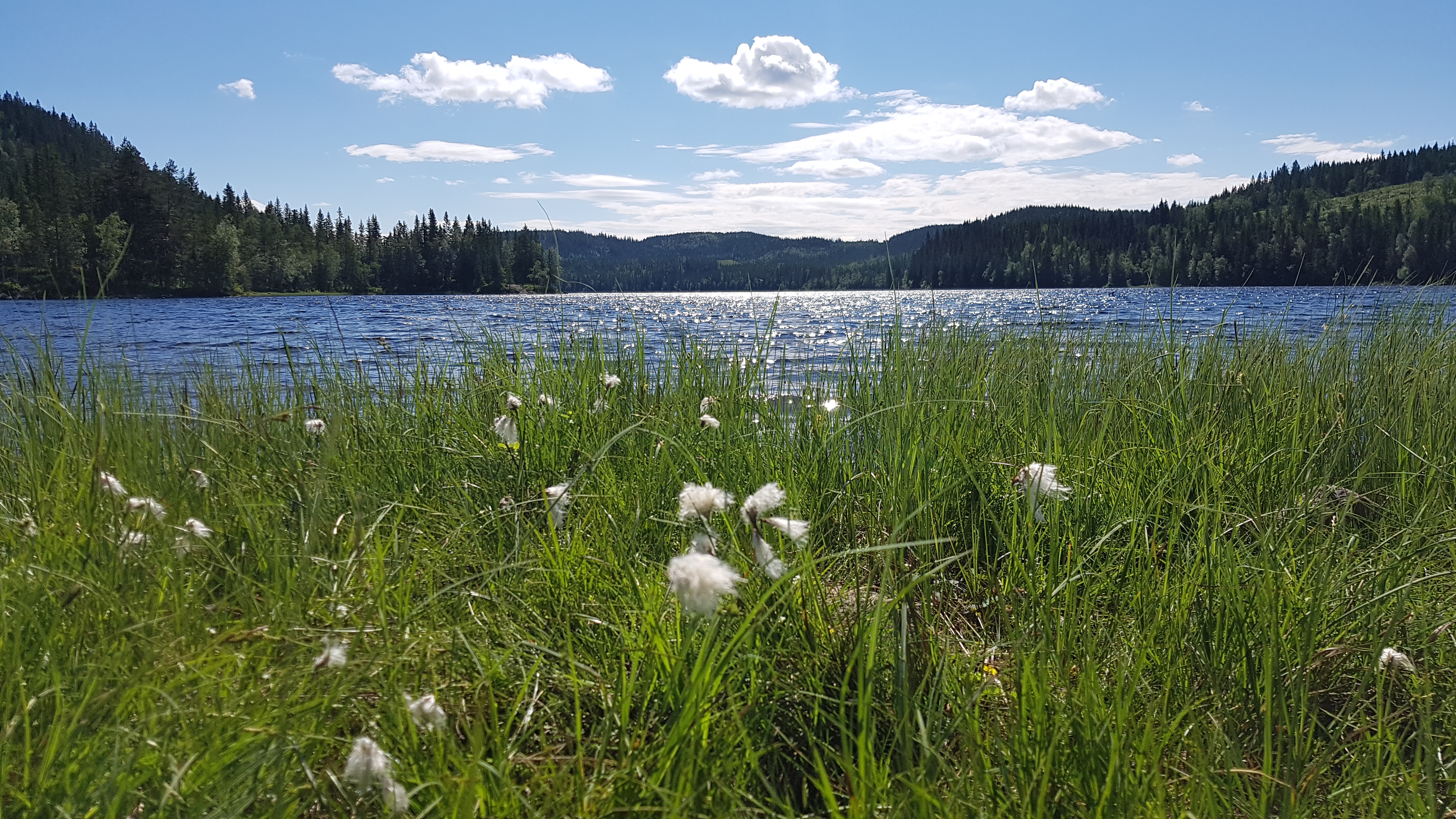 GLITRENDE: Råsjøen skinte om kapp med solen i dag og vi fikk bare lyst til å stupe uti. Foto: Lisa Näsholm