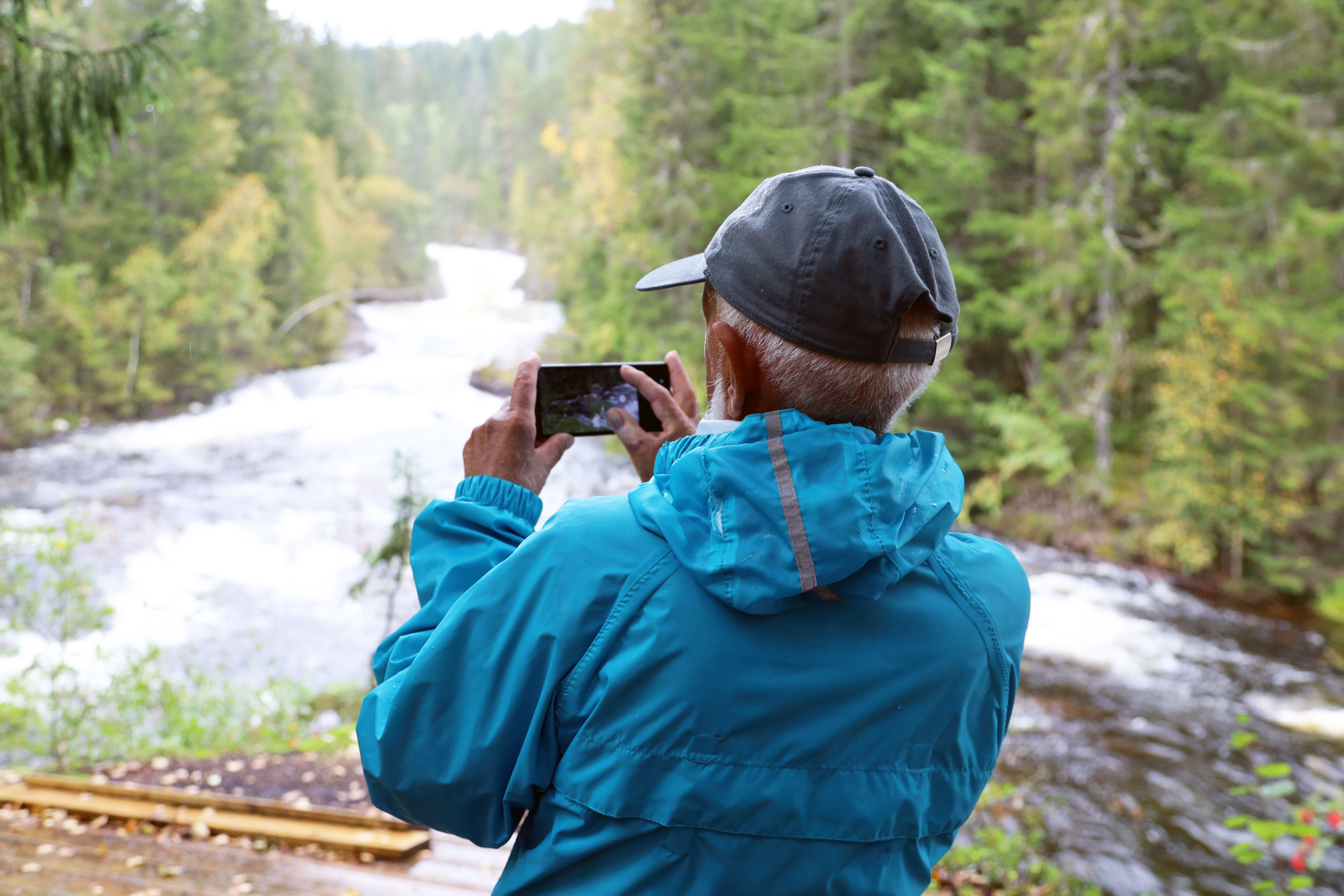 Bjørnsjøhelvete. Jeg har vært med på å rydde sti dit. Du vet hvorfor det heter “helvete”? Det var tøft å være tømmerfløter. Mange har passert Bjørnsjøhelvete, for man har ikke sett skiltet. Men nå er det blitt bra. Å, det er nydelig der.