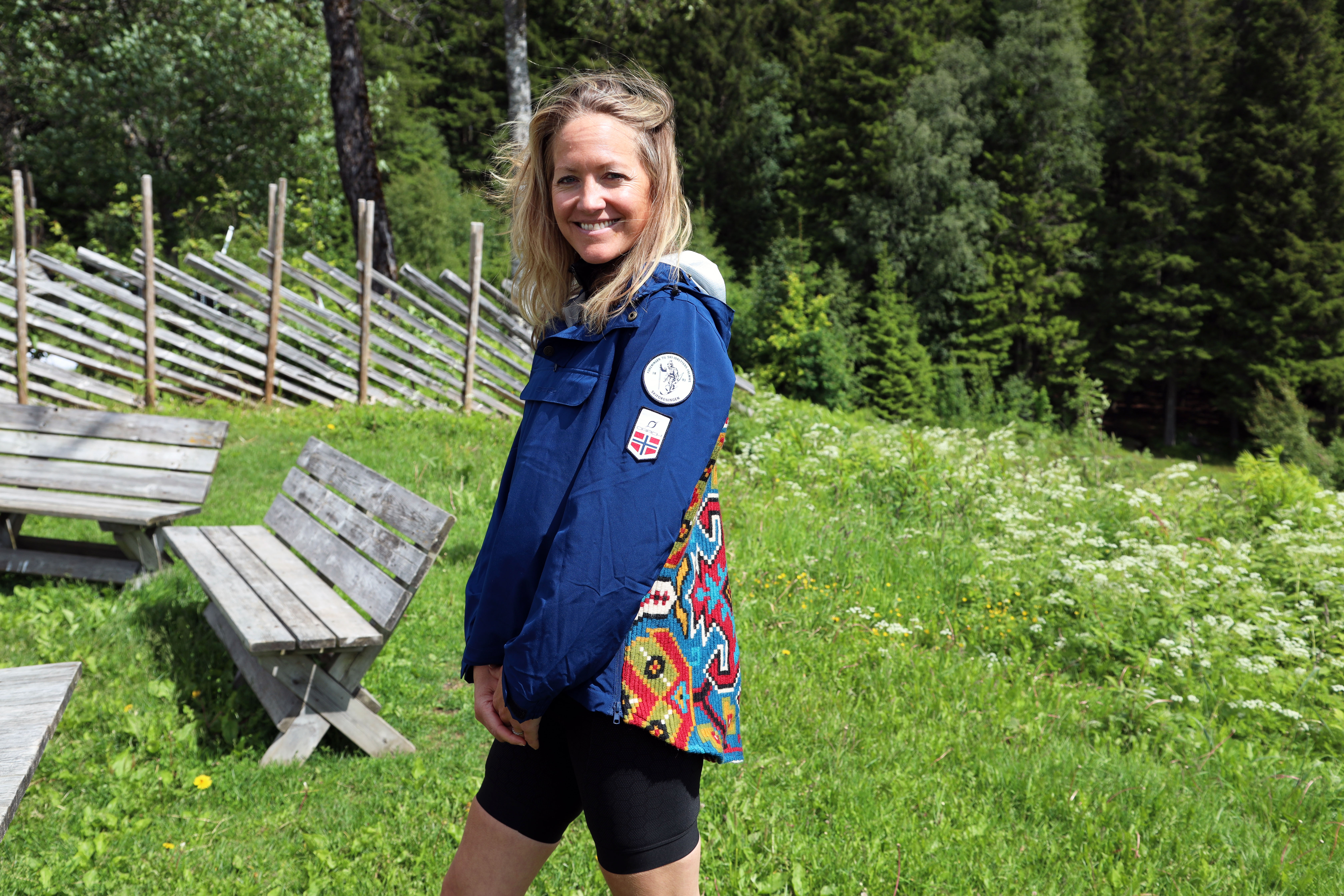 Åkler: Hilde Hoff Nordskar redesigner og syr om brukte plagg. Her i en Skiforeningen-anorakk.