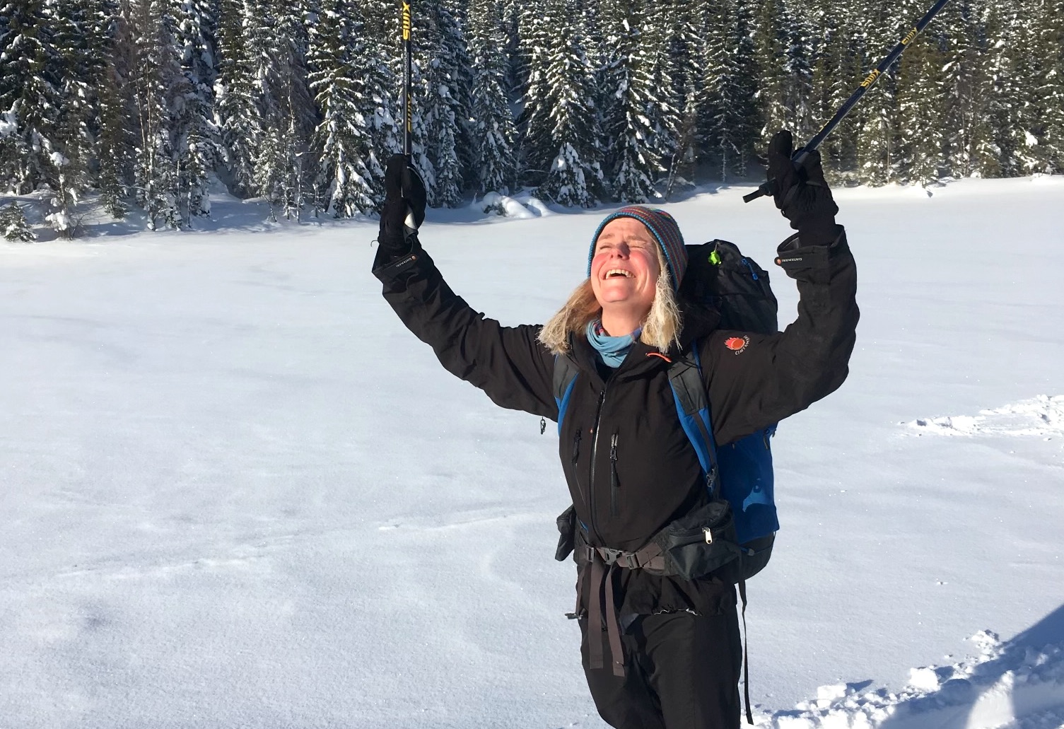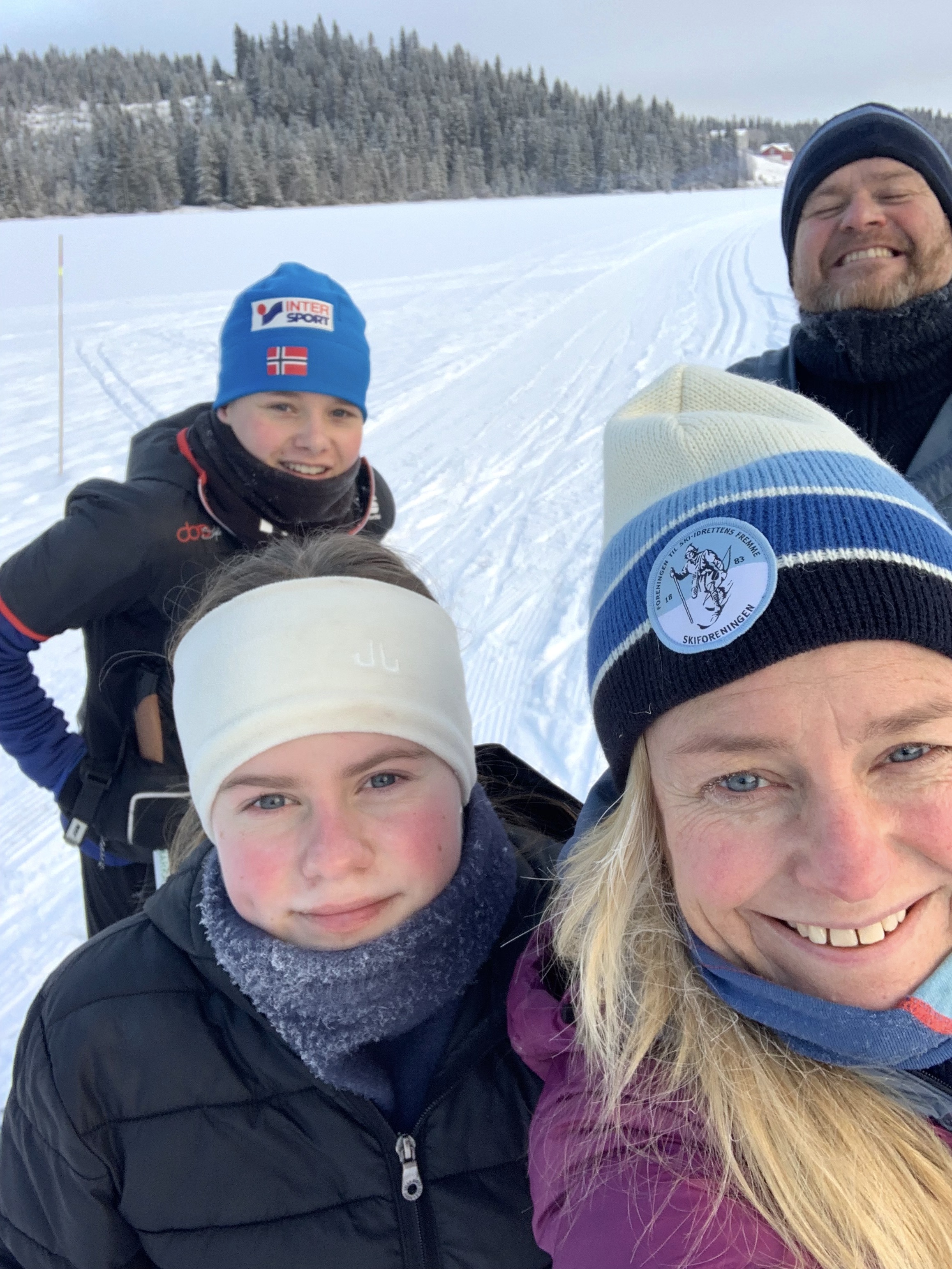 – Vestlendingen er glad i tur, men kanskje mest om sommeren. Kjartan synes det er rart å oppsøke snø når det er bart i byen. Jeg kan vel ikke akkurat si at tenåringsbarna finner stor glede i å ta seg en skitur nå. Men jeg tenker sånn: Når de blir voksne, vil de se i fotoalbumene våre. Og da vil de lure på om vi egentlig drev med noe annet enn å gå på tur. Så de har det i kroppen.