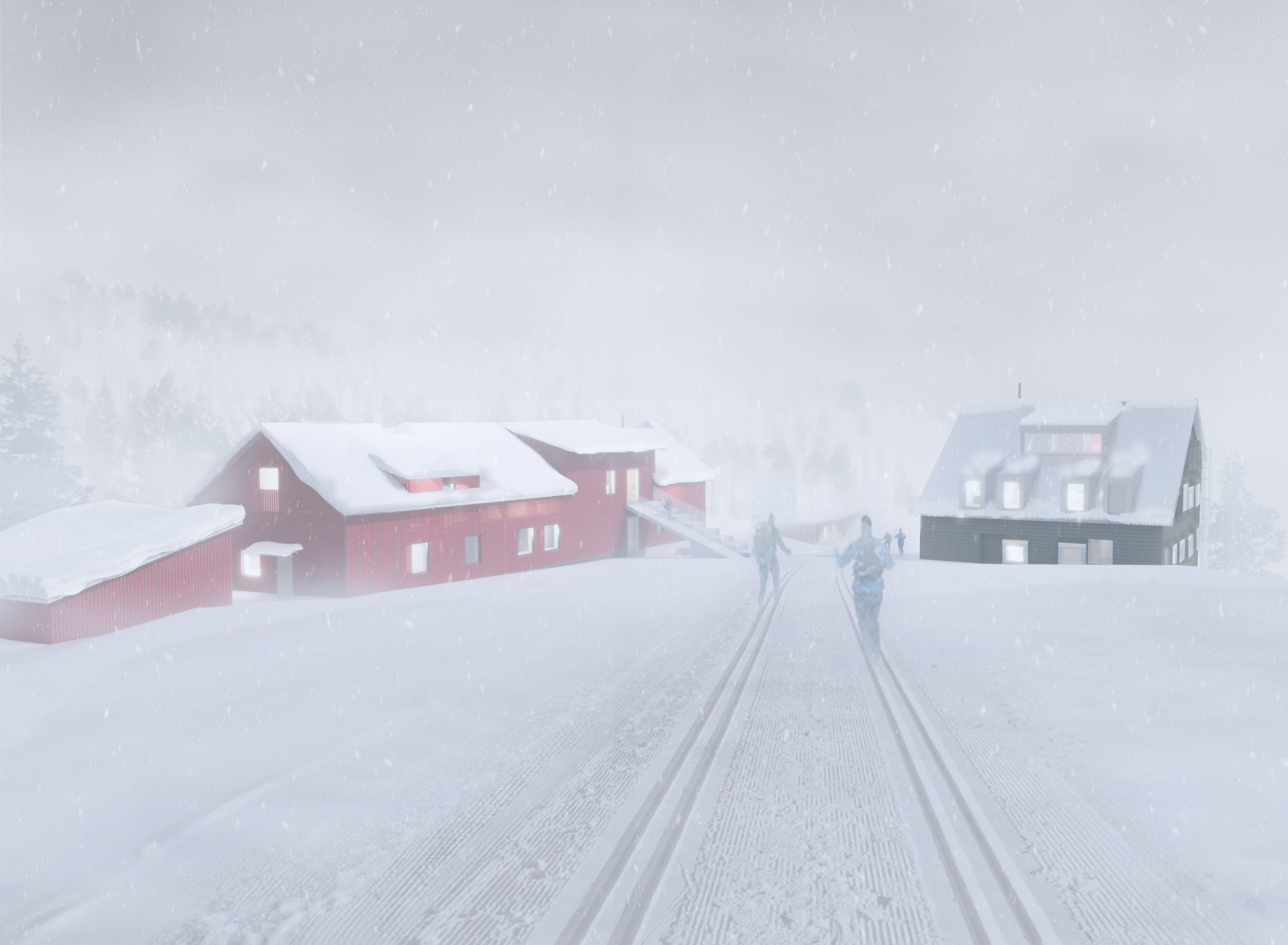 – Siden prosjektet naturligvis har en mye lengre tidshorisont enn det, ble riving og nybygg anbefalt. Fravær av vernehensyn støttet opp under beslutningen. En ombrukskartlegging er gjennomført, og blant annet skal låvegulvet gjenbrukes som kledning på DNT-hyttene. Fotavtrykket utvides noe, men byggene plasseres på samme sted og vil ha samme høyder som i dag, forteller Gurandsrud.