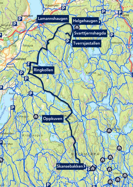 Sagnomsuste navn som Svarttjernshøgda, Oppkuven, Ringkollen, Lamannshaugen oser villmark og ekspedisjon. Har du vært her, har du liksom gjort Marka.