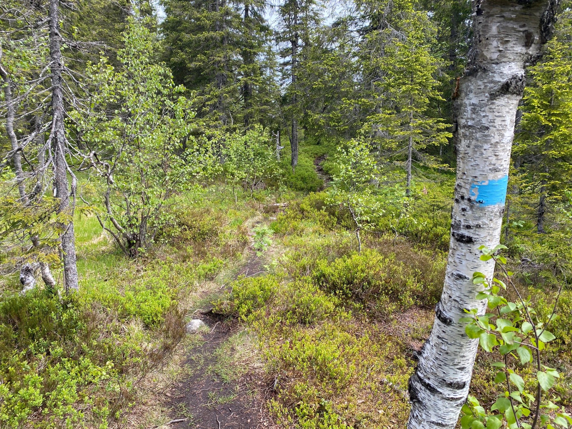 🌲Vil du kun gå, kan du delvis følge fin sti langs skogsbilveien oppover mot Smedmyrkoia.