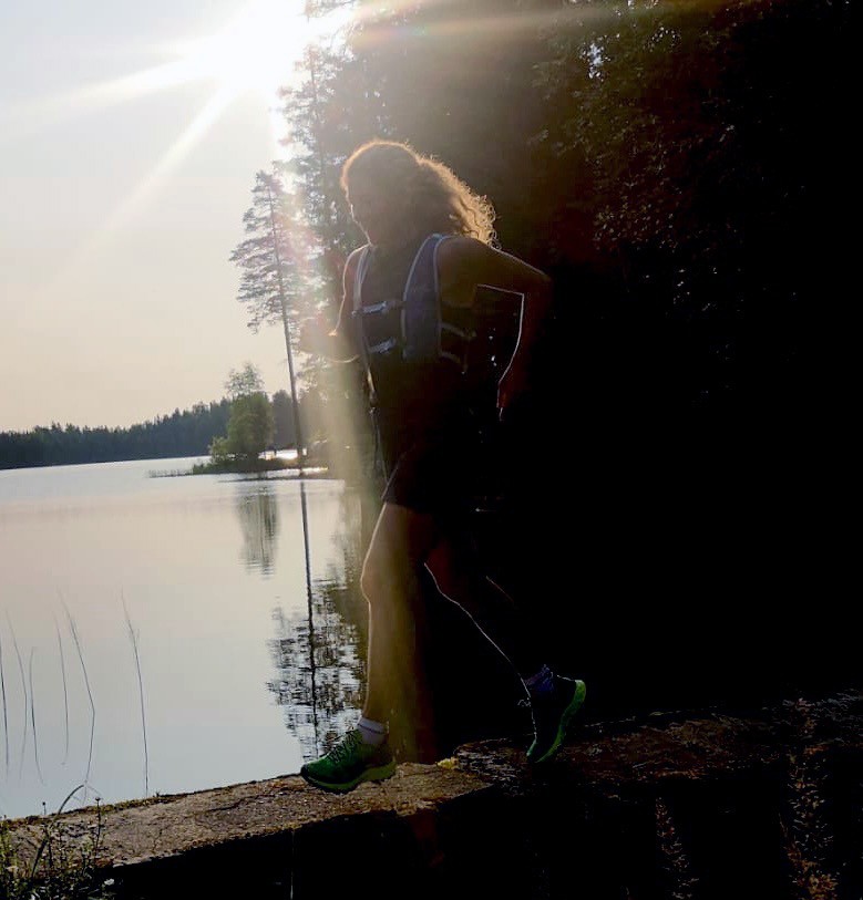 – Jeg løper ikke for å prestere. Jeg løper for å være ute, for å få ro i hodet og kjenne at kroppen fungerer. Det er tilfredsstillende å ta sats over dørstokken, uansett vær, og la kroppen få jobbe litt, løfte legemet over røtter, stein og kvist. Trippe, flyte og nesten fly over langstrakte svaberg.