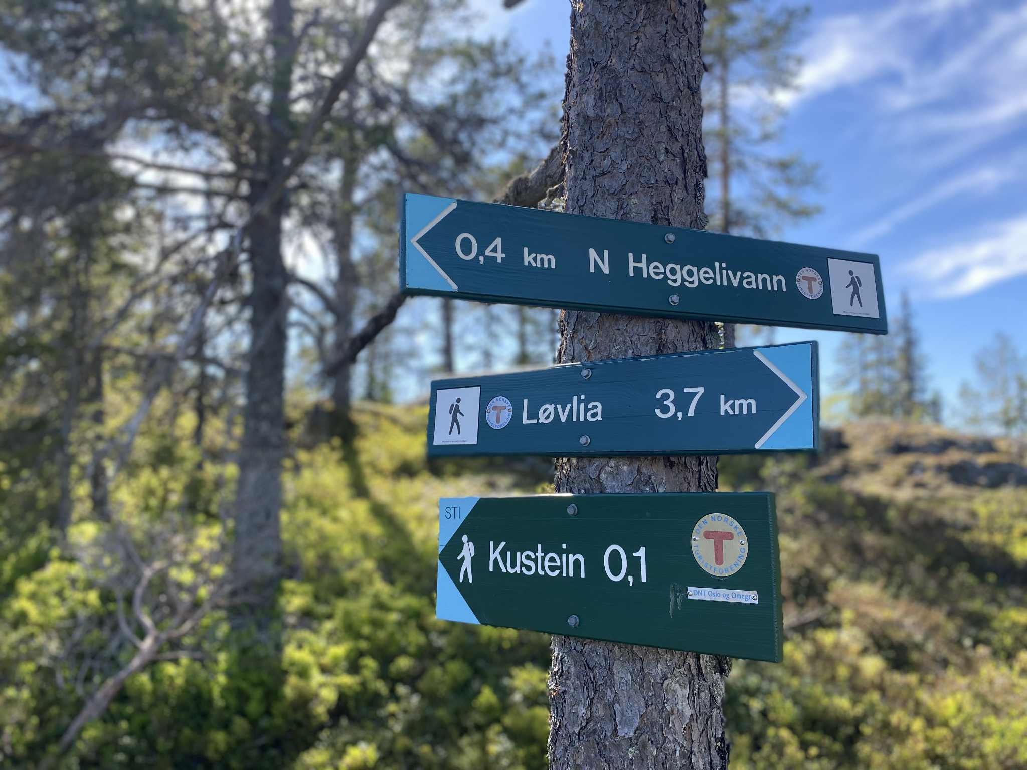 🌲Følg feks stien over Møkkeliatjern til Løvlia, og stien over Kustein tilbake fra Løvlia og til sykkelen ved Heggelivann.