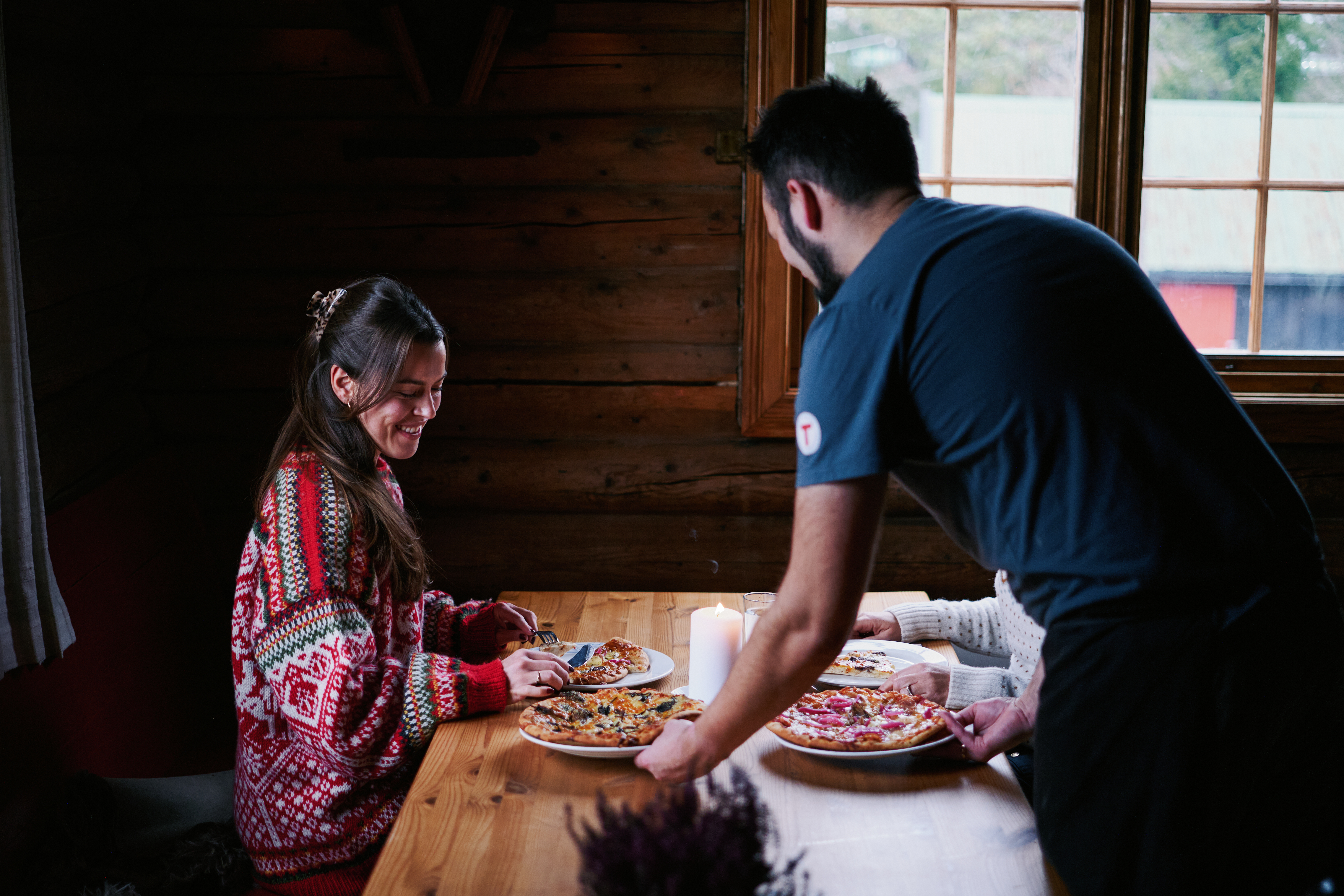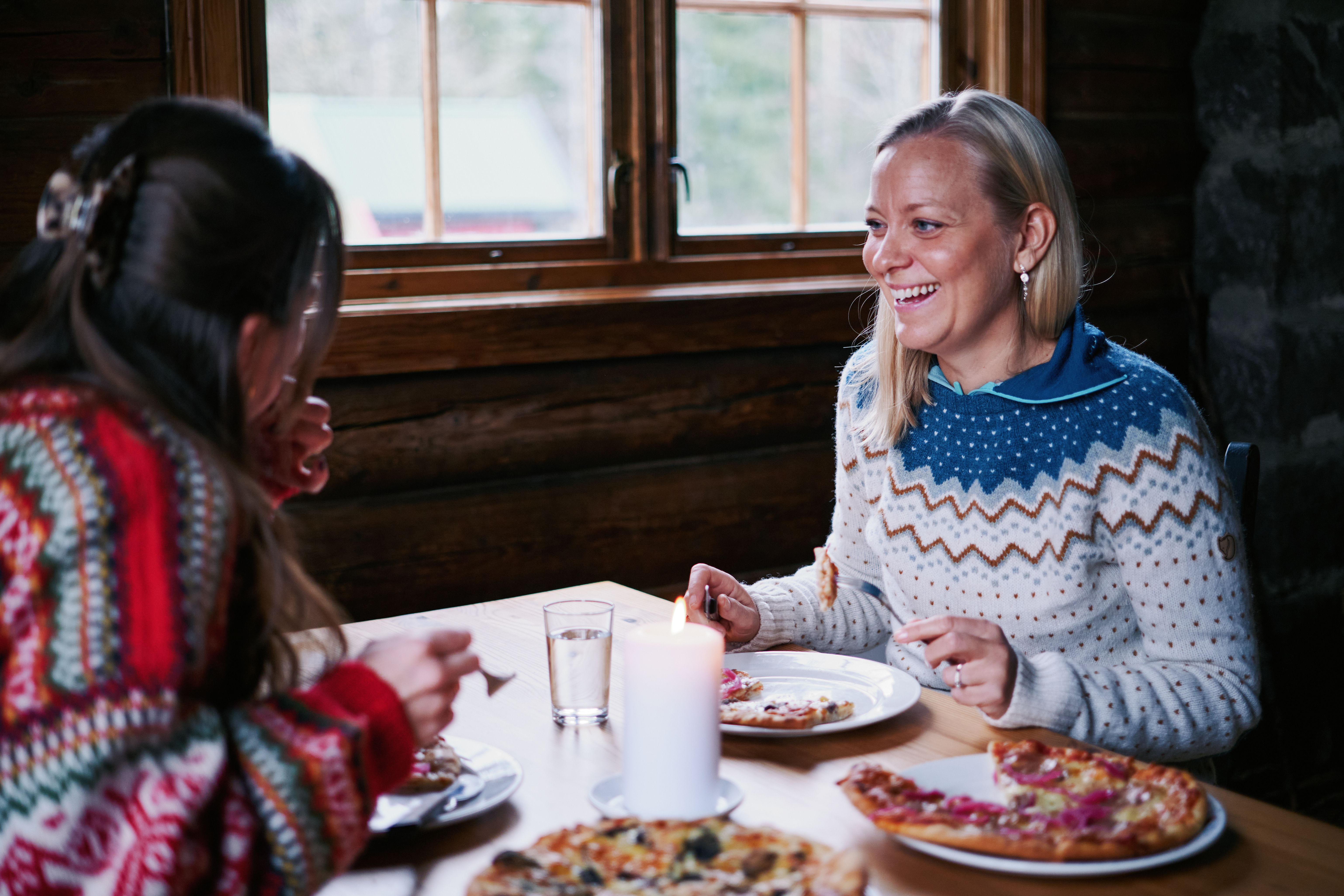 Tirsdag i Marka: Pizzaen er servert på Kobberhaughytta. Foto: Daniel Jacobsen, DNT Oslo