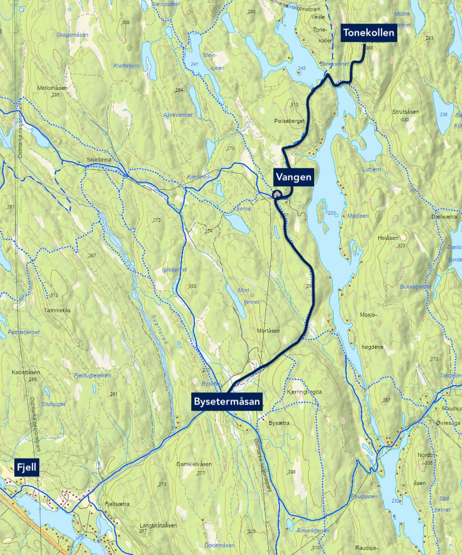 🌲Total turlengde: Bysetermåsan – Vangen – Tonekollen – Vangen – Bysetermåsan: ca 10 kilometer