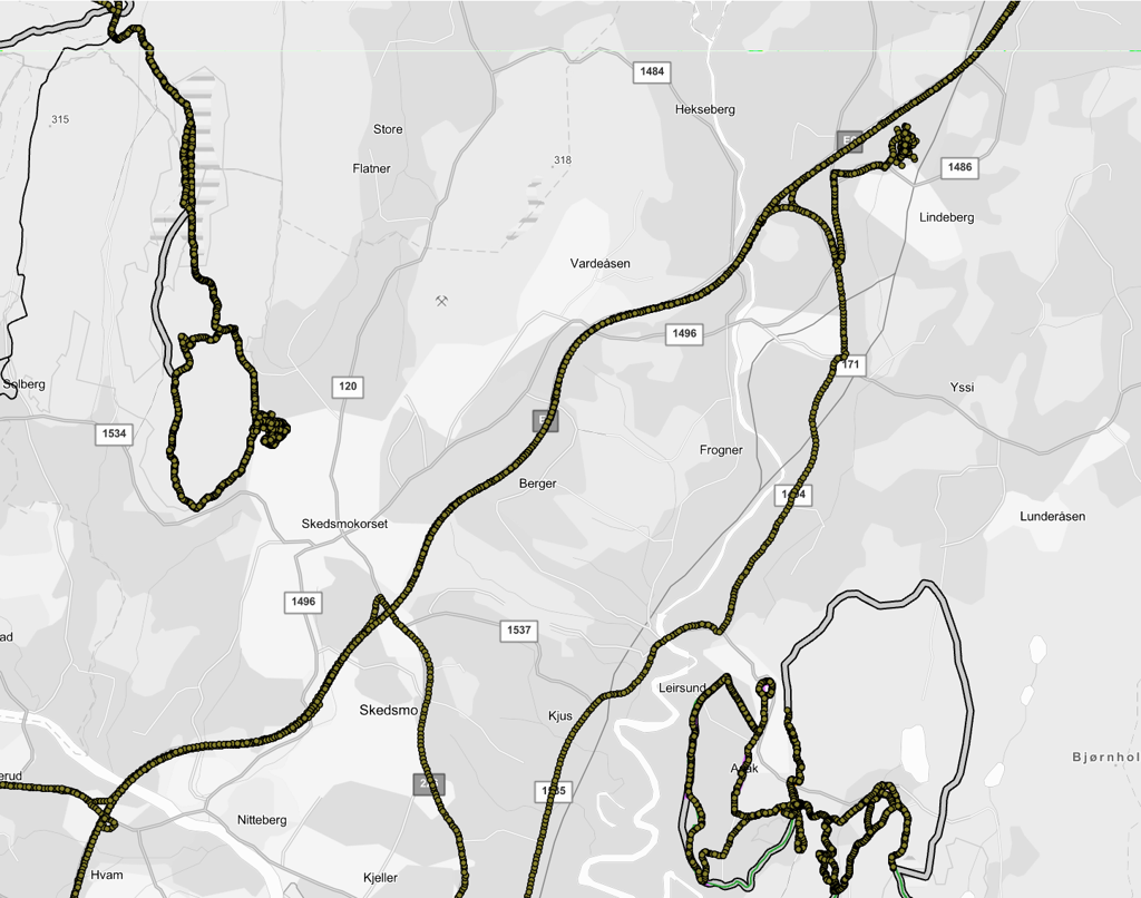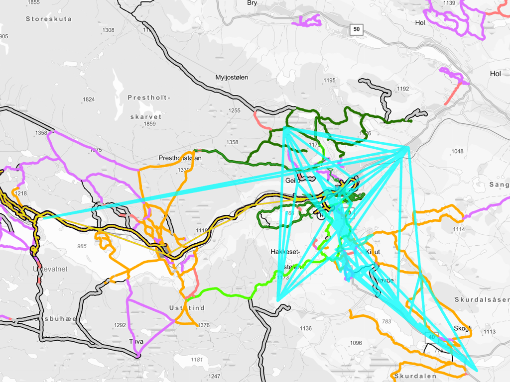 I tillegg mottas store mengder gps-punkter fra gps-enheter som ikke er SLÅTT AV. Dvs. vi har lange ruter helt ute av kurs, og som absolutt ikke kan klassifiseres som løypekjøring “utenfor spor eller alpinanlegg”.
