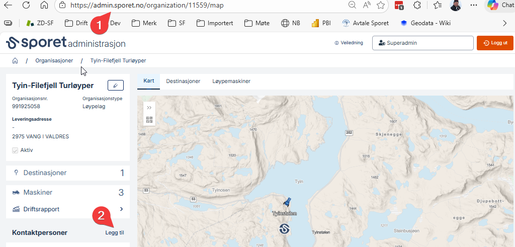 - Gå til Sporet admin i nettleser https://admin.sporet.no eller gå direkte til pkt 3 Mitt løypelag