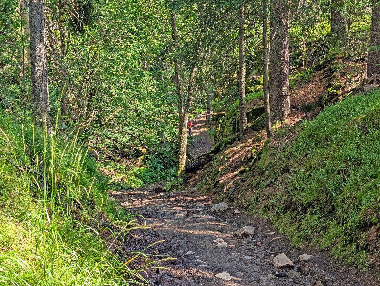 Etter Trongkleiv fortsetter mot vest et alternativ til runden over et av de typiske svabergområdene i denne delen av marka mot ei fint restaurert milorghytte. Første gang vi var der – for mer enn ti år siden – var dette et håpløst nedfallsprosjekt, se bilde fra 2010-06-27.