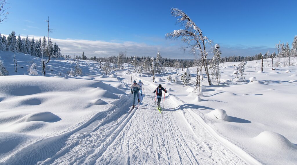 Idag er grønne og oransje løyper å foretrekke, men de lilla kan også være bra om de er mindre enn tre dager gamle. Sjekk din lokale føremelding og kartet i Sporet-appen. Vær fortsatt obs på at issvuller kan dukke opp under nysnøen og at det i terrenget er lite snø mange steder.