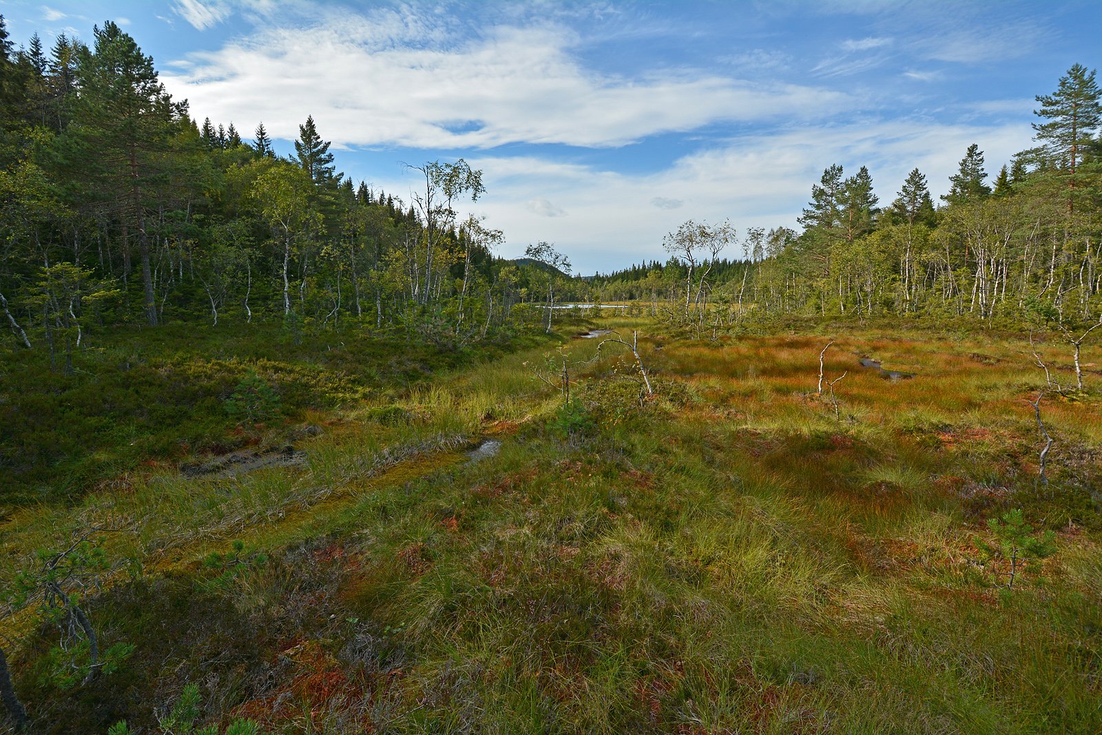 RENNE I MYRA: Vestre Otertjern er mye mindre enn det østre, er omgitt av vide myrer og har naturlig utløp mot nord. Mot syd heller myra oppover, og det er en tydelig utgravd renne fra vannet og sydover.