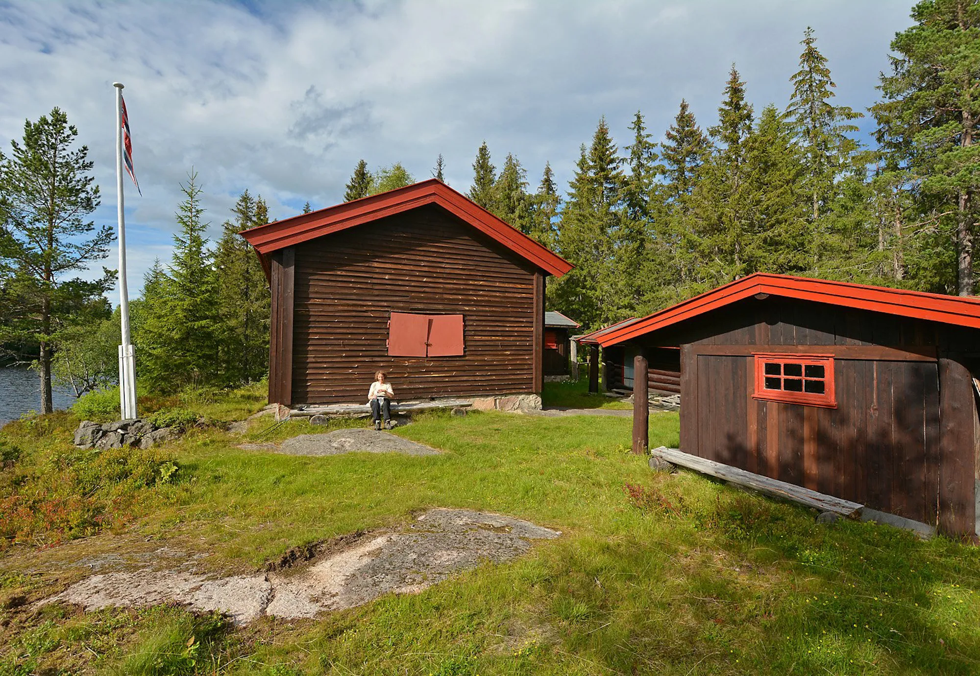 BLOKSBERG: Vest for Åbortjern ligger hytta Bloksberg. Velholdt, men ikke mye brukt nå for tiden om man skal dømme ut fra stien dit. Flaggstangens litt spesielle utseende skyldes ikke objektivfeil, men at fundamentet er i ferd med å gli ut.